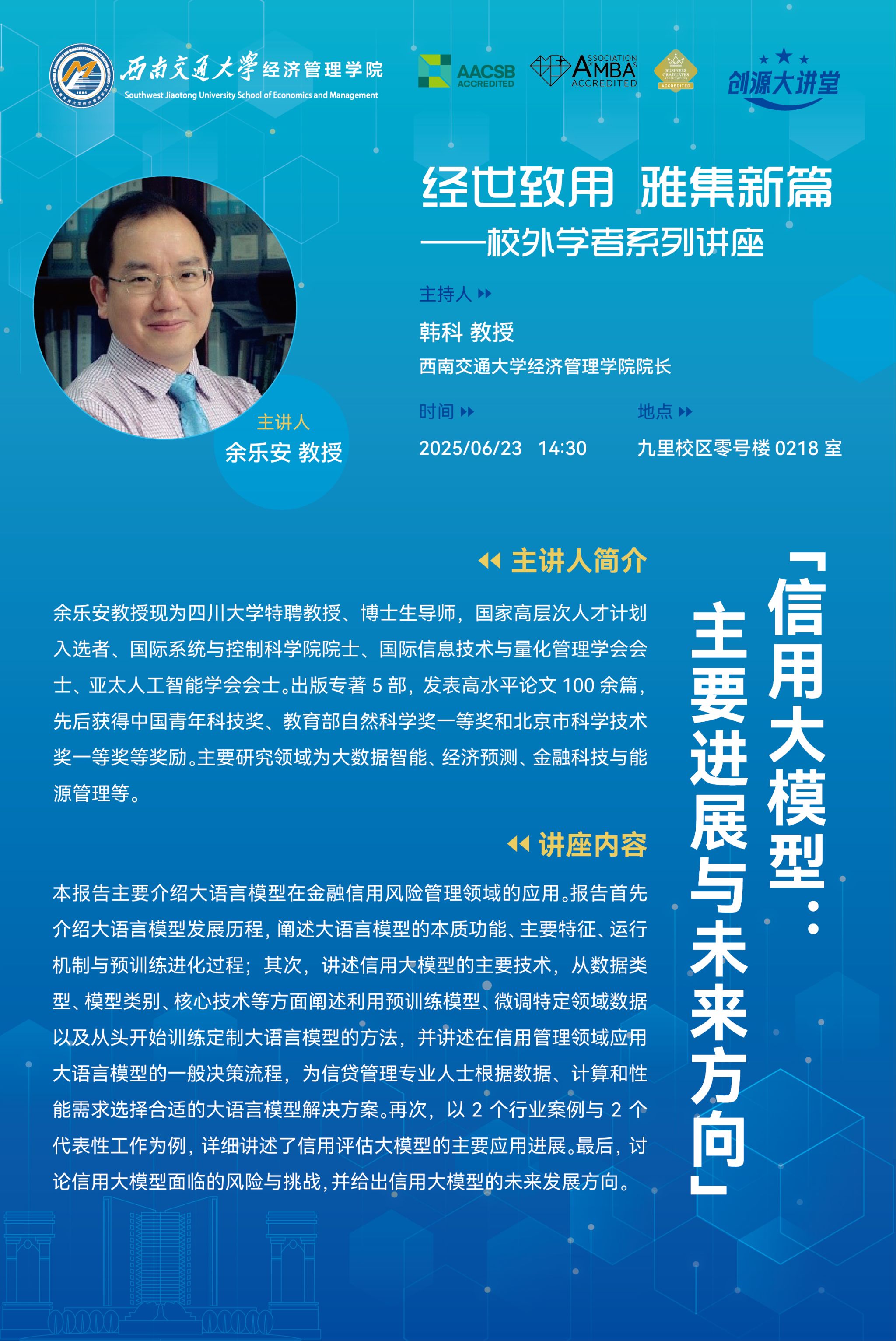 四川大学商学院余乐安教授学术讲座