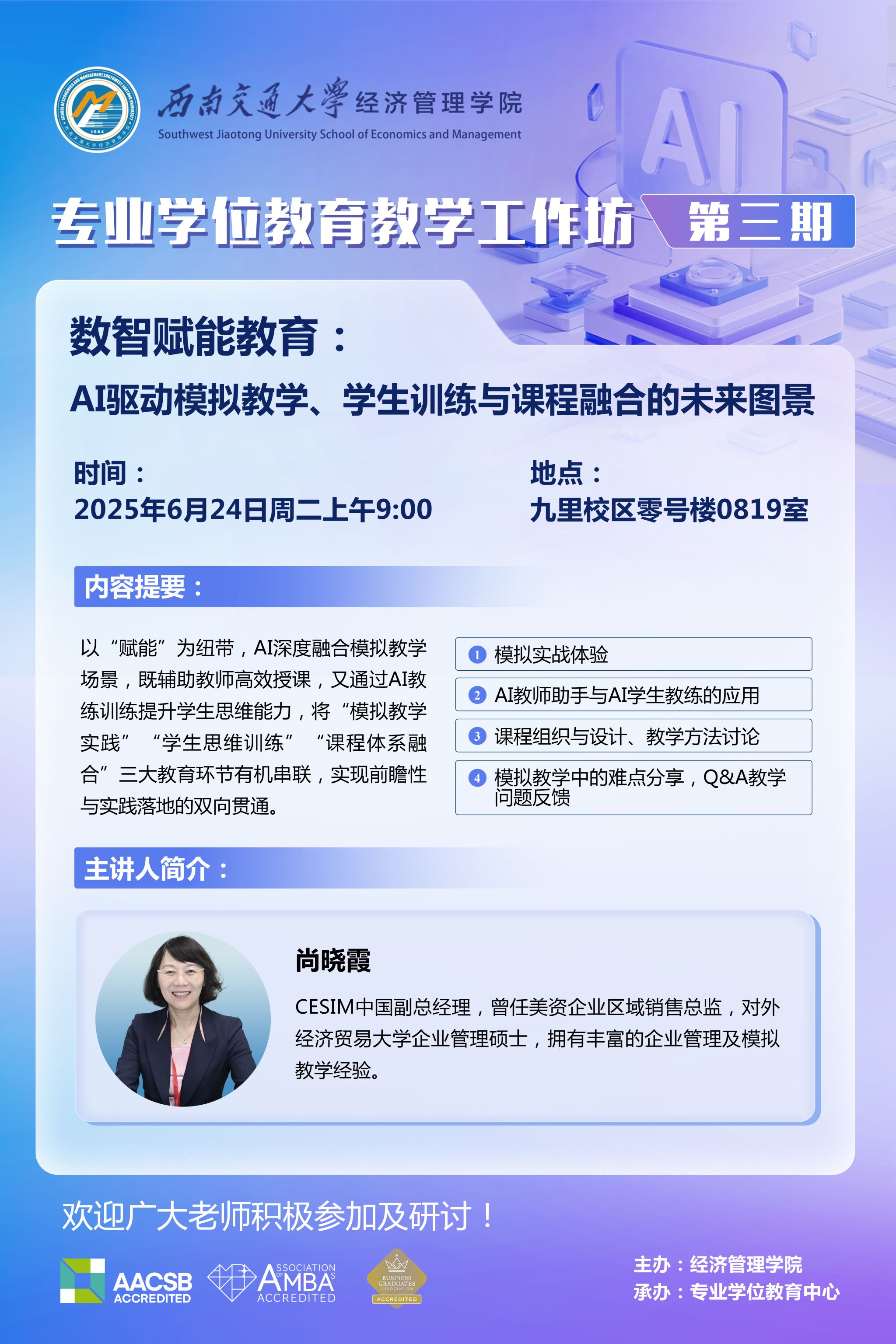 专业学位教育教学工作坊第三期:数智赋能教育:AI驱动模拟教学、学生训练与课程融合的未来图景