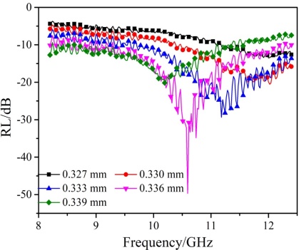 (3)采用稀土离子掺杂技术,调整钙钛矿结构钛酸锶SrTiO3的晶体结构,改变其电磁参数,开发出一系列新型介电型吸收剂,其具有吸收频带宽,匹配厚度小(≤0.34 mm)的优异微波吸收能力。
