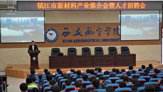 汪峰副主任对镇江市新材料产业进行了推介。他从镇江历史悠久的文化底蕴以及现代化产业优势两个方面向大家作了介绍,同时表达了镇江对优秀人才的需求,希望西航学子到镇江去发展。会后,13家企业进行了人才招聘。