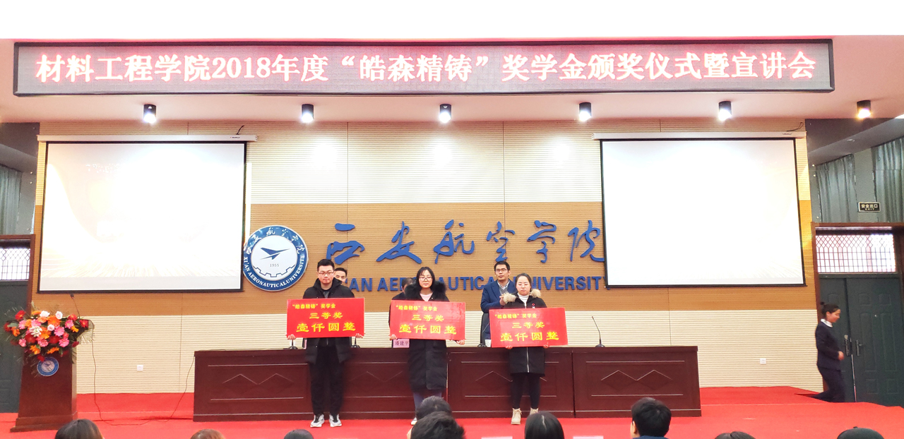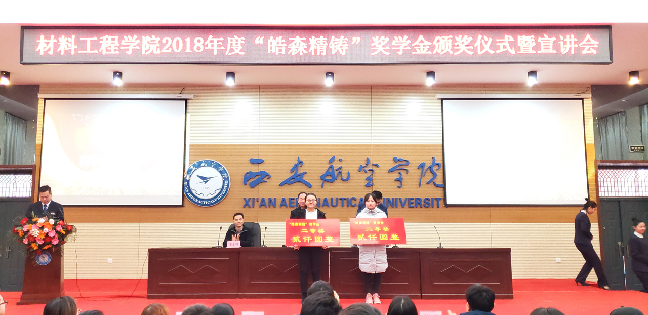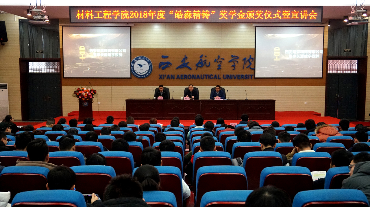 2018年12月14日上午10点30分,taptap点点官方网站2018年度“皓森精铸”奖学金颁奖仪式于阎良校区报告厅举行。出席本次会议的有西安皓森精铸有限公司董事长潘建宇,taptap点点官方网站院长谢辉,党总支书记王永锋以及部分taptap点点教师代表,此次会议由学生管理科科长张赛主持。