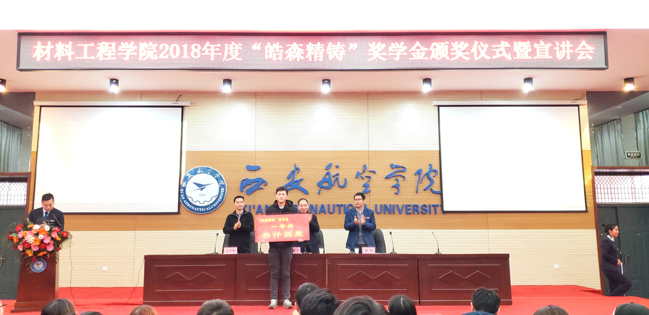 材料科学1903班李娜同学作为获奖学生代表发言,首先她对西安皓森精铸有限公司的慷慨资助、对学院老师的大力培养及同学们学习和生活上的帮助表示感谢;皓森精铸奖学金不仅是给表现优异的同学经济上的支持,更是精神上的鼓励,这不仅体现了皓森精铸企业良好的社会责任感,更彰显了皓森精铸企业文化;在大学时光中,要勇于挑战、努力奋斗,不辜负学校、企业、社会对我们的期望。