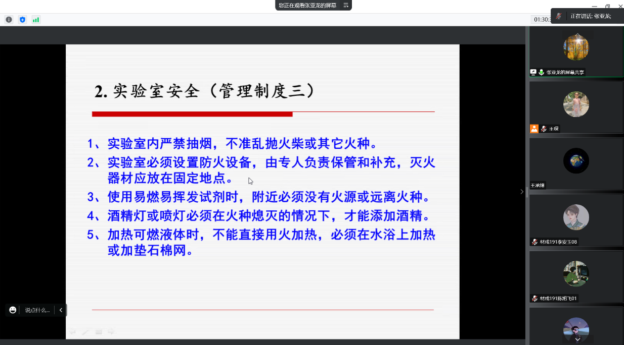 会上,王琛老师通过教学大纲、毕设流程、工作职责和注意事项四个方面为学生详细介绍了毕业设计(论文)工作的目标、任务和重要性,强调了毕设过程中注意事项和学术不端问题与学士学位授予的关系。材料加工教研室副主任宋梦华老师从任务书、开题报告、开题报告、毕业论文、工作记录和各类表格等方面,为学生详细讲解了毕设资料的规范和要求。材料实验研究中心张亚龙老师为学生介绍了实验室的组成和管理制度,以实验室安全案例讲解了设备操作规范和安全注意事项,强调了实验过程中的人身安全和实验室安全。会中,学生就本科毕业设计(论文)工作中的疑问与参会教师进行了积极交流;指导教师表示会积极配合学校、学院的毕设安排,为学生的毕设开展保驾护航,保证此项工作顺利进行和圆满完成。