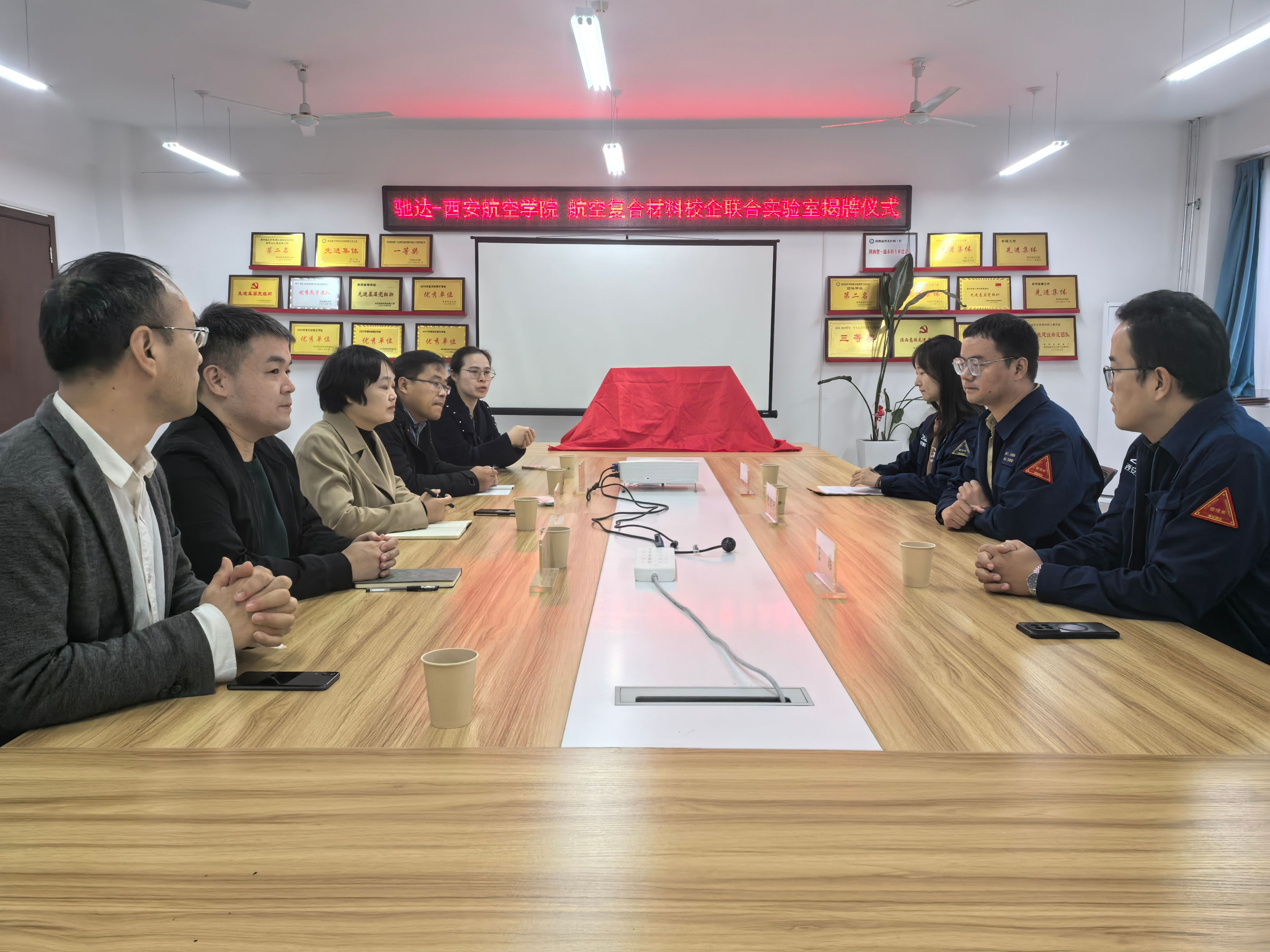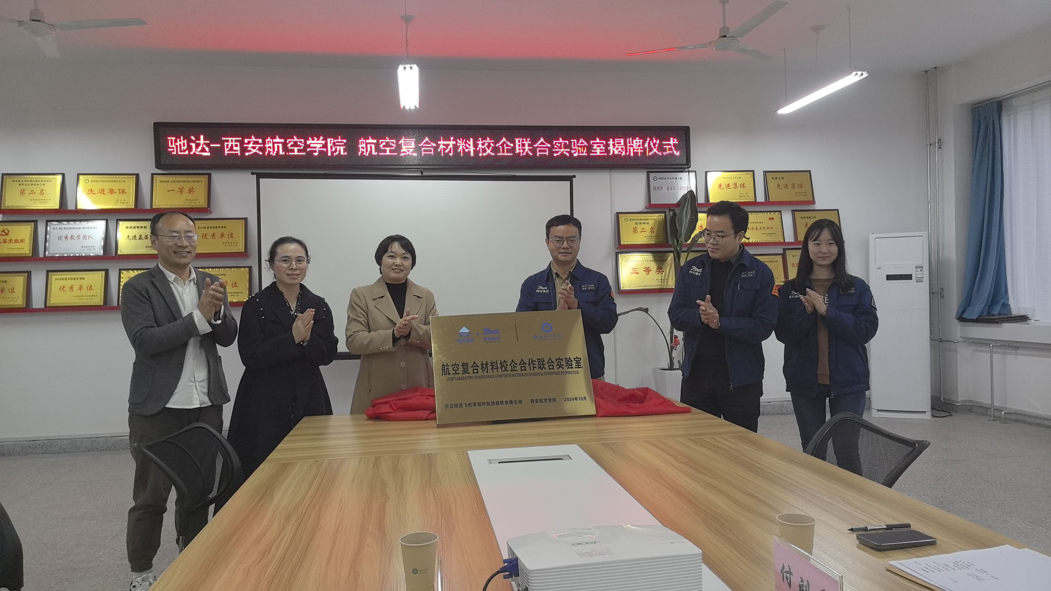 10月30日上午,taptap点点官方网站于阎良校区4号楼4209会议室举行驰达-西安航空学院航空复合材料校企联合实验室揭牌仪式。仪式由taptap点点官方网站院长于方丽主持,西安驰达飞机零部件制造股份有限公司人力资源总监范荣军、技术经理王瑶、人力资源专员付刘香以及taptap点点官方网站副院长李兆、副书记高均立、复合材料与工程专业带头人周影影,系主任孟志新、材料分析测试中心主任陶世平出席了本次揭牌仪式。