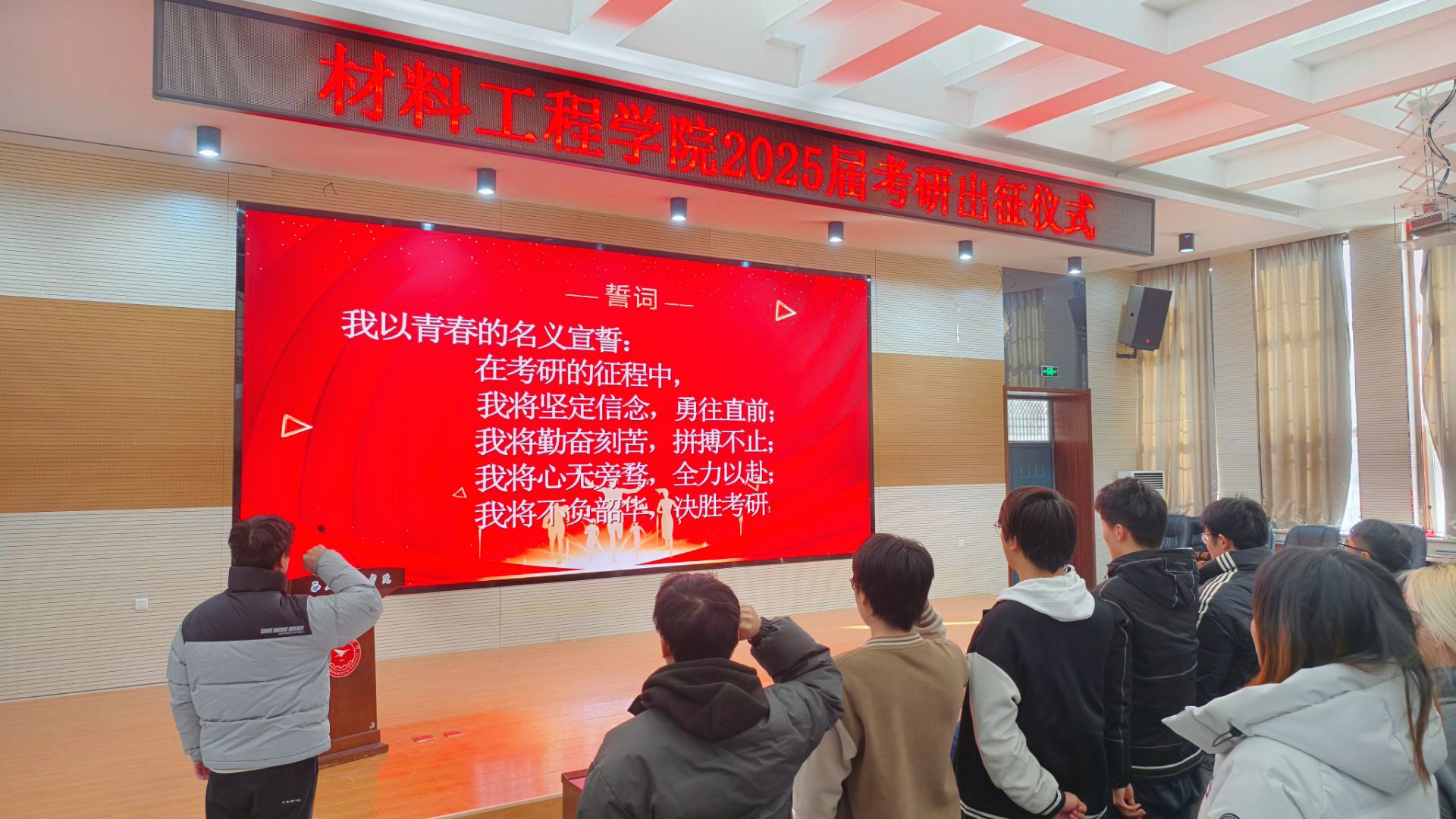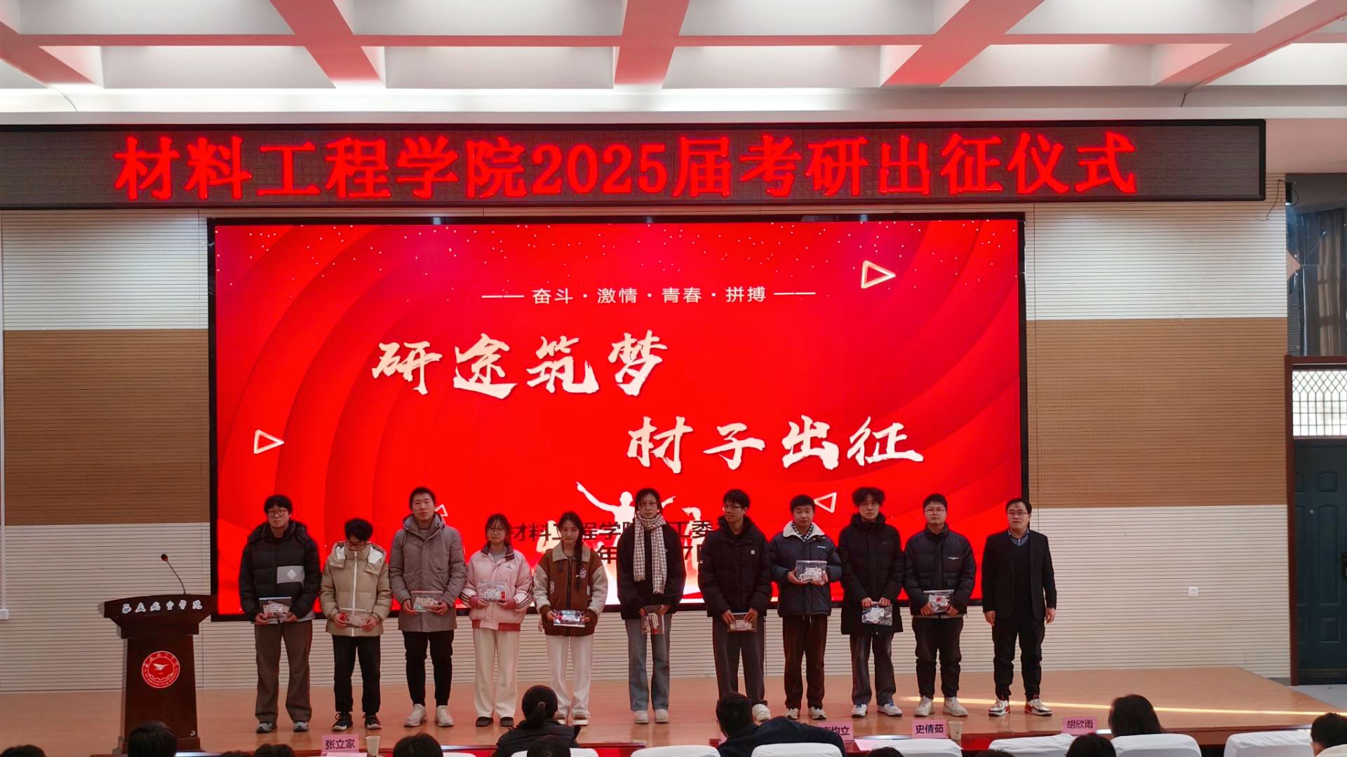 12月17日,taptap点点官方网站关工委在阶梯一报告厅举办“研途筑梦,材子出征” 2025届考研出征仪式,为即将踏上考场的考研学子们加油助威,注入强大的精神动力。学院党总支书记严碧峰、党总支副书记高均立、学工办主任雒亚男、团总支书记张立家、2024级辅导员胡欣雨等出席,仪式由2025届就业辅导员史倩茹主持,2025届考研学生参加。