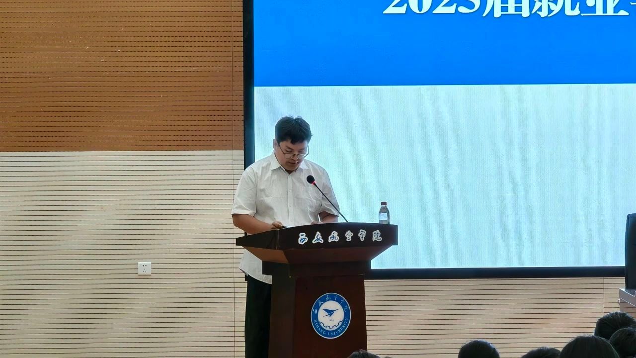 副院长李兆介绍毕业季教学安排,并对“3 + 1”就业模式进行讲解。帮助同学们明确毕业季学业重点,同时对新就业模式有了清晰认知,为即将到来的求职做好充分准备。