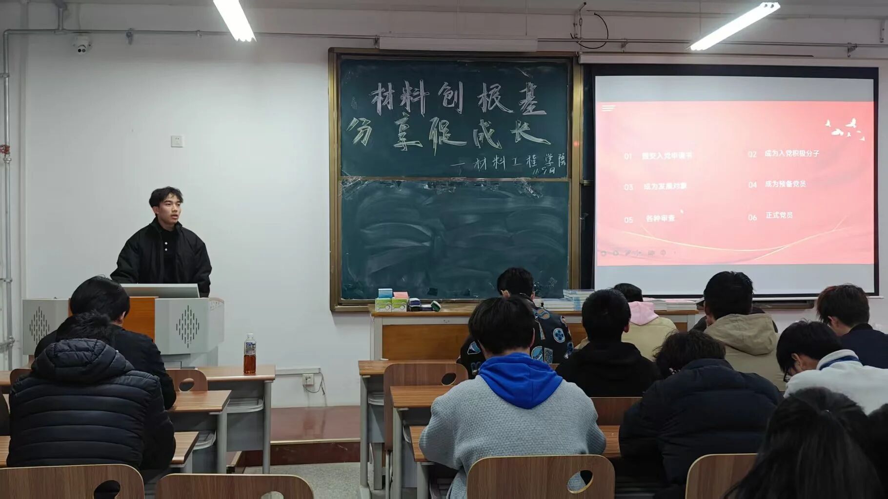 活动伊始,组织部负责人潘俞海围绕党务工作进行系统讲解,详细介绍了入党申请、积极分子选拔、政审考核等关键流程,明确了各阶段的核心标准。他鼓励同学们筑牢思想根基、端正入党动机,通过规范准备材料和积极参与实践锻炼党性,并说明学院组织部将持续提供指导,助力同学们成长进步。