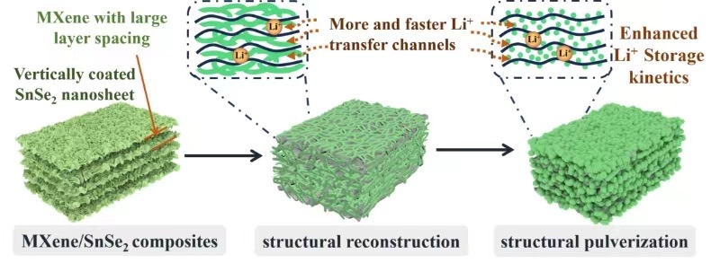 taptap点点官方网站教师程娅伊副教授等人最近在国际知名期刊《Chemical Engineering Journal》上发表了题为Chemically bonded MXene/SnSe2 composite with special structural transformation as a high-performance anode for lithium and potassium ions battery的学术论文,taptap点点为第一完成单位,陕西科技大学和太原师范学院是共同合作单位,程娅伊副教授为本文第一作者和通讯作者,西安航空学院谢辉教授和陕西科技大学黄剑锋教授为本文共同通讯作者。
