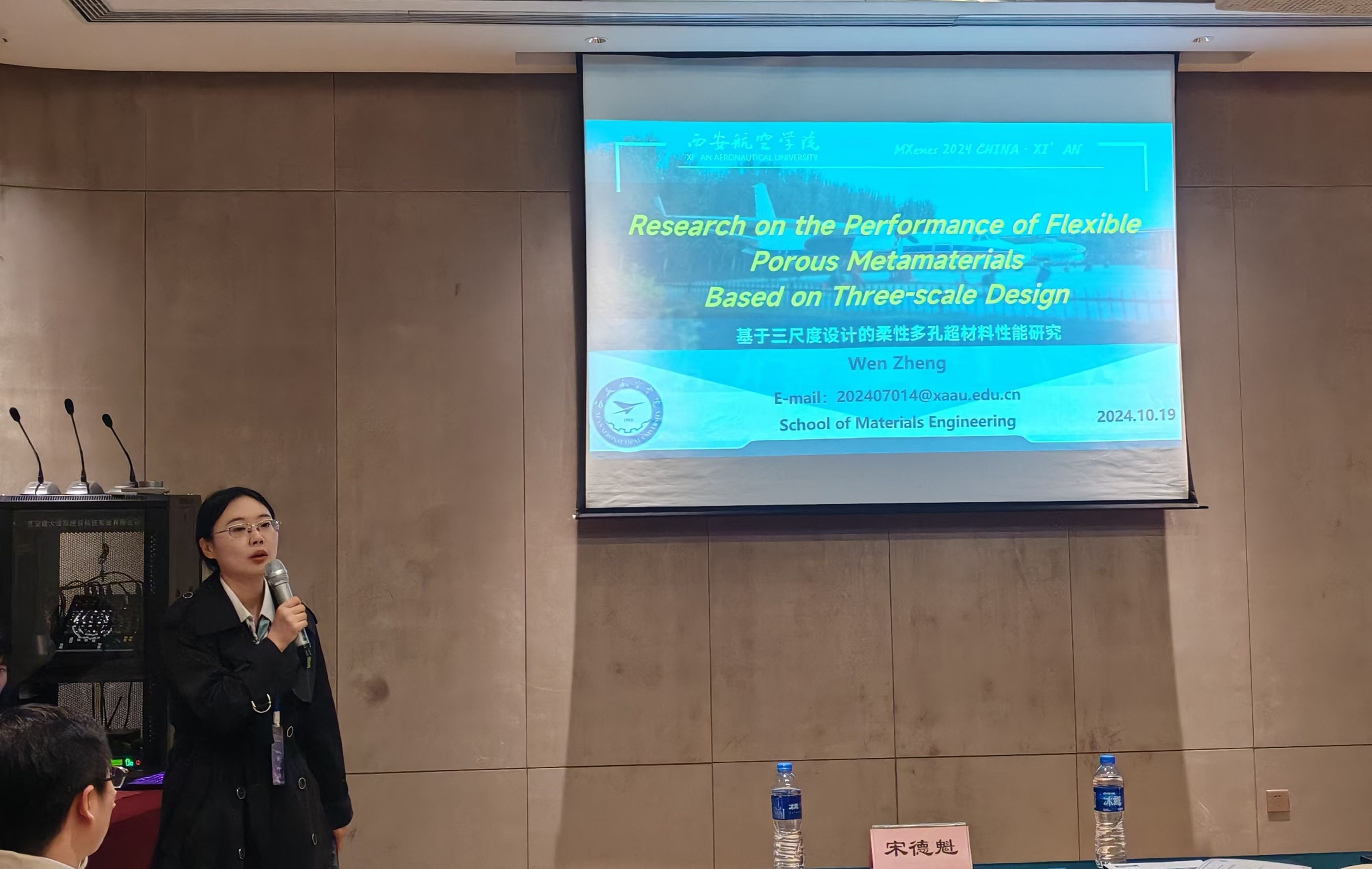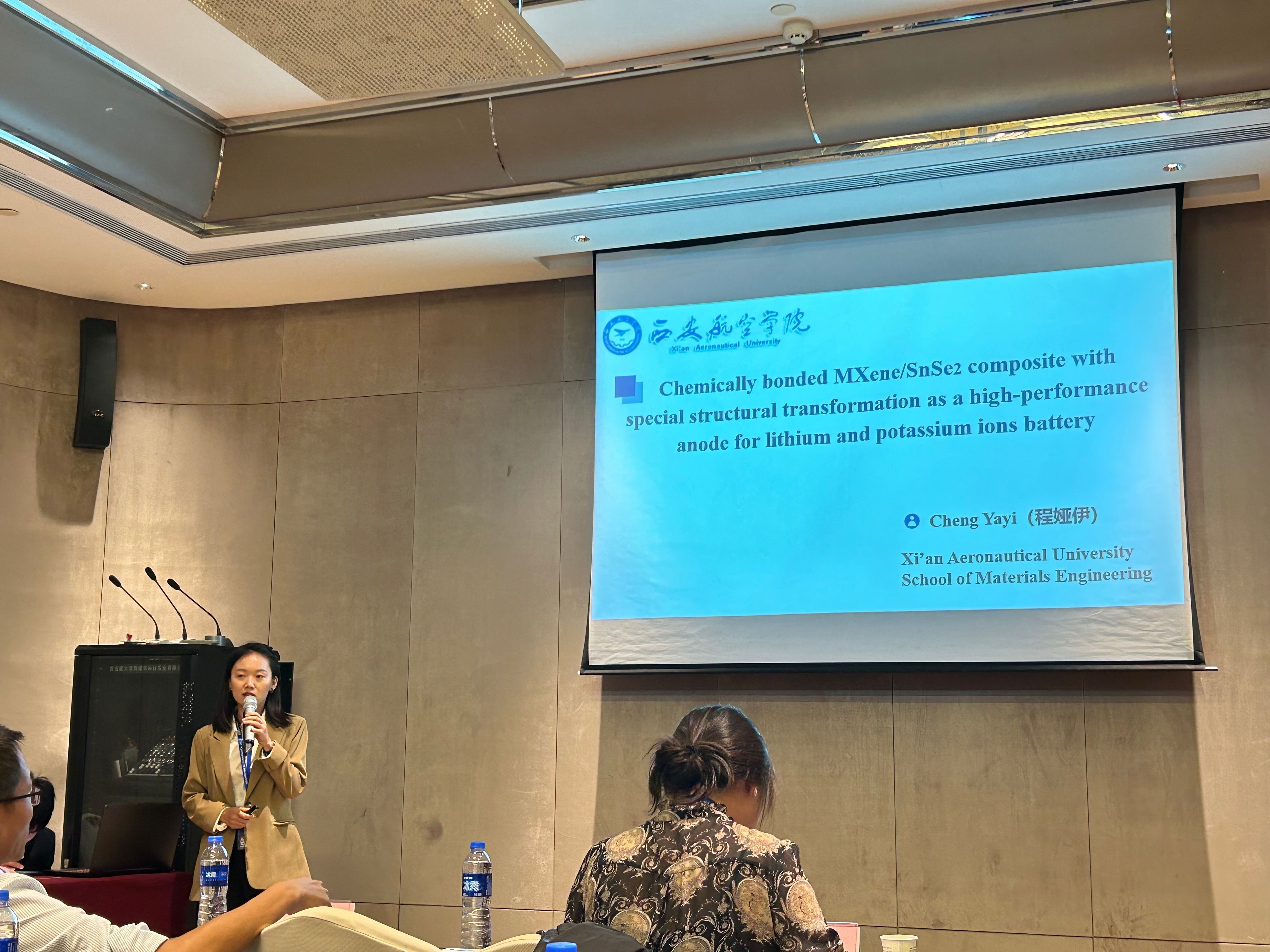 在本次会议上,taptap点点官方网站的两位教师——程娅伊和郑文,分别就各自的研究领域进行了学术报告,展示了学院在材料科学领域的最新研究成果。程娅伊老师作了题为《Chemically bonded MXene/SnSe2 composite with special structural transformation as a high-performance anode for lithium and potassium ions battery》的报告。主要聚焦于通过化学键合MXene/SnSe₂复合材料,利用其特殊的结构转变来提升锂离子和钾离子电池的性能。此项研究不仅为新型电池材料的设计提供了全新的思路,也为未来高性能储能装置的开发奠定了理论基础。郑文老师则带来了题为《Research on the Performance of Flexible Porous Metamaterials Based on Three-scale Design》的报告,分享了在基于三维尺度设计的柔性多孔超材料性能研究方面的最新进展。此项研究对于航空材料的轻质化、柔性化以及多功能化具有重要的应用前景,对于提升材料的结构功能一体化具有深远意义。