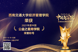 The MBA program of the School of Economics and Management of Southwest Jiaotong University was successfully included in the "Top 100 Best MBA Programs of China Business School"; the "Traffic Management" MBA program of the School of Economics and Management of Southwest Jiaotong University won the "Special MBA Program Award of China Business School"; and the School of Economic and Management of Southwest Jiaotong University won the honorary title of "China Charity Star Business School".