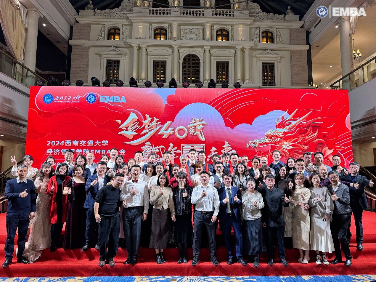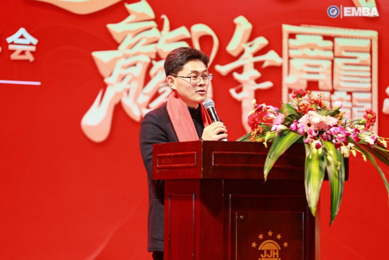 2011级EMBA校友、四川鑫投交通科技集团有限公司董事长赵丕强带来了《危机与奋斗·梦想与坚持·读书与锻炼》的个人分享。他介绍了鑫投交科的发展现状和未来趋势,并就他所处行业的前沿技术创新、商业模式应用等方面提出了个人见解。最后,他希望与各位校友携手,传承西南交大经管EMBA的使命与荣光,在这里脚踏实地,砥砺前行。祝福大家在新的一年里能够收获新知识、新朋友、新未来。