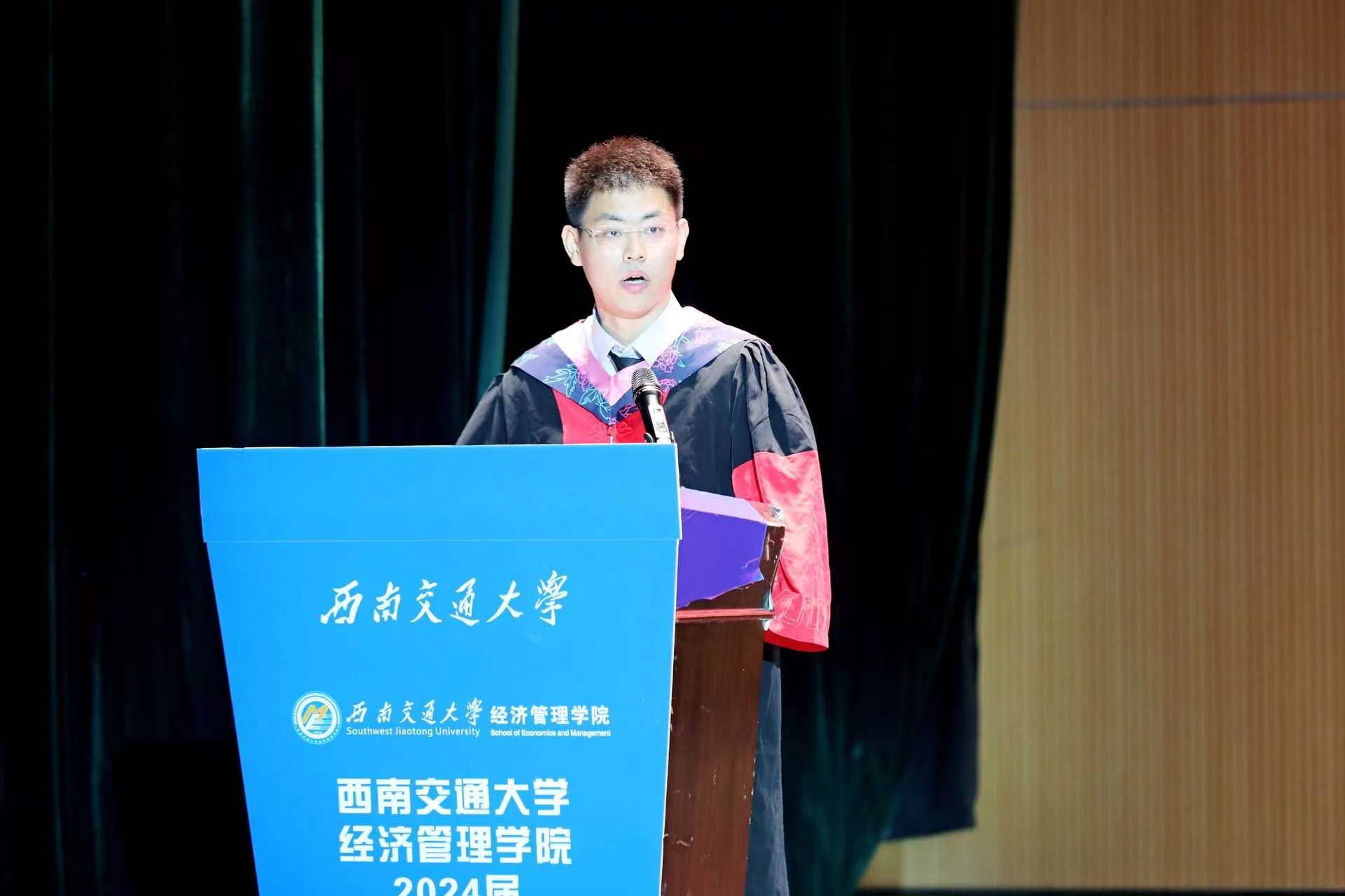 徐进老师作为全院教师代表,为2024届毕业生致临别寄语。他以大数据和人工智能为生动比喻,为毕业生们提出建议,他指出要在人生“大数据”中寻找价值,用大数据思维从生活点滴中汲取信息,明确人生方向,且要有广阔视野和包容心态,持续学习、自我优化。