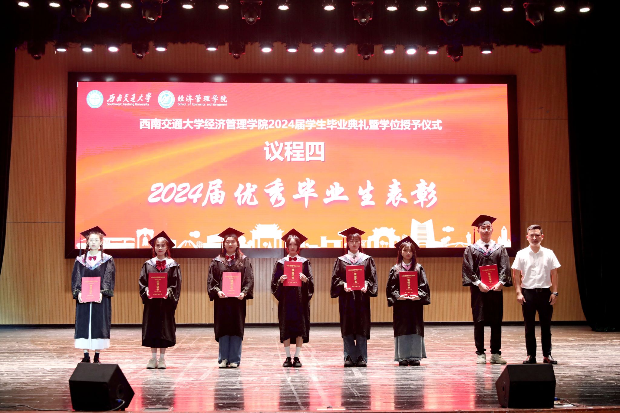 学院党委书记郭强宣读2024届本科生、研究生省级及校级优秀毕业生名单,党委副书记晏理斌为获奖毕业生代表颁奖。