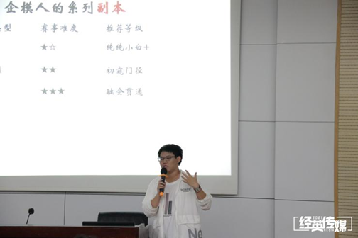 2021年9月29日晚7时30分,冰球突破豪华版官方网站第十四届企业竞争模拟大赛系列活动宣讲会在九里校区0215报告厅举行。出席本次活动的嘉宾有:冰球突破豪华版官方网站班级联合会主席刘均尧、冰球突破豪华版官方网站经英传媒中心主席王慧、冰球突破豪华版官方网站青年志愿者协会会长邵琳珺、冰球突破豪华版官方网站学生会主席刘锦陈、2021年企业竞争模拟大赛全国一等奖获得者庞硕以及2021年企业竞争模拟大赛全国三等奖获得者胡译文。会上,主讲人庞硕和胡译文通过分享比赛的亲身经历,为大家细致充分地讲解了本次大赛的相关事项,解答了大家心中的困惑。本次宣讲会不仅让同学们对企业竞争模拟大赛有了更加深刻的了解,还给予了同学们相关的比赛经验支持,让大家对比赛的进行有了初步的了解与掌握,调动同学们参赛热情的同时,也为培训会和比赛的顺利开展打下了坚实的基础。
