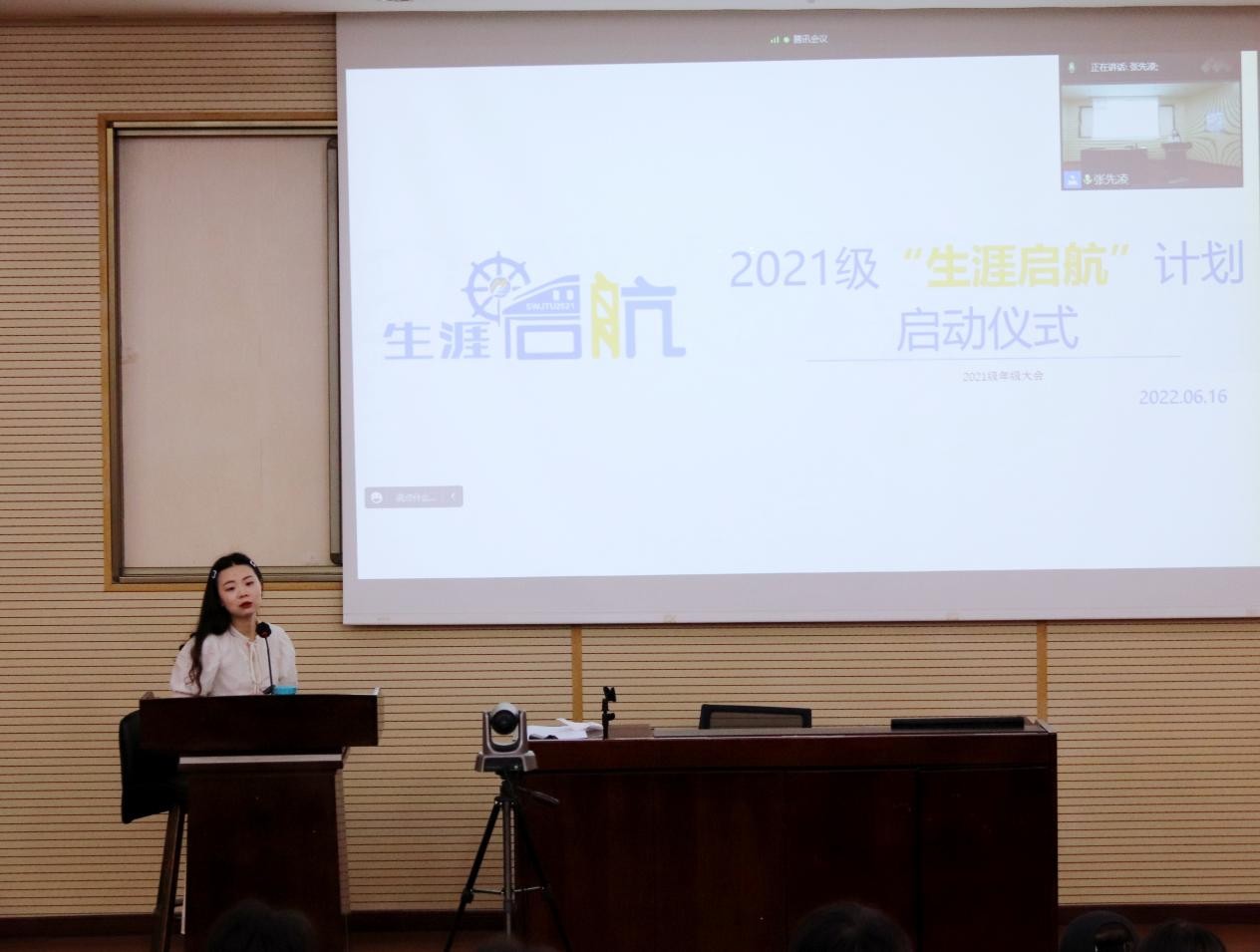 骄阳似火,绿树成荫。冰球突破豪华版官方网站本科2021级已于本学期内完成了大类专业分流,全年级368名同学将于下学期进入新的专业班级开启大学生涯新一阶段的学习。在此基础上,年级辅导员张先凌、莫代玉、张媛媛策划并筹备了冰球突破豪华版官方网站本科2021级“生涯启航”计划,并于2022年6月16日以线上线下相结合的方式举行了“生涯启航”计划启动仪式和系列活动第一场——“生涯初探”分析讲解,三名辅导员以及2021级全体同学参加本次活动。