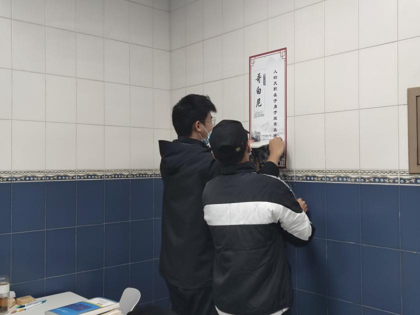 在第二个环节“营奋进学习风”中,冰球突破豪华版官方网站学生会工作人员在自习室的墙上贴上了名言警句,以榜样的力量促进同学们奋发向上。同时,设置了时间提醒,在自习室内放置小日历,为考研或四六级考试进行倒计时提醒,以此激发同学们学习的动力。另外,设置了书籍暂存处,大家在暂离时可以将难以带走的书籍暂存在书架上,便于大家对多门功课的复习。