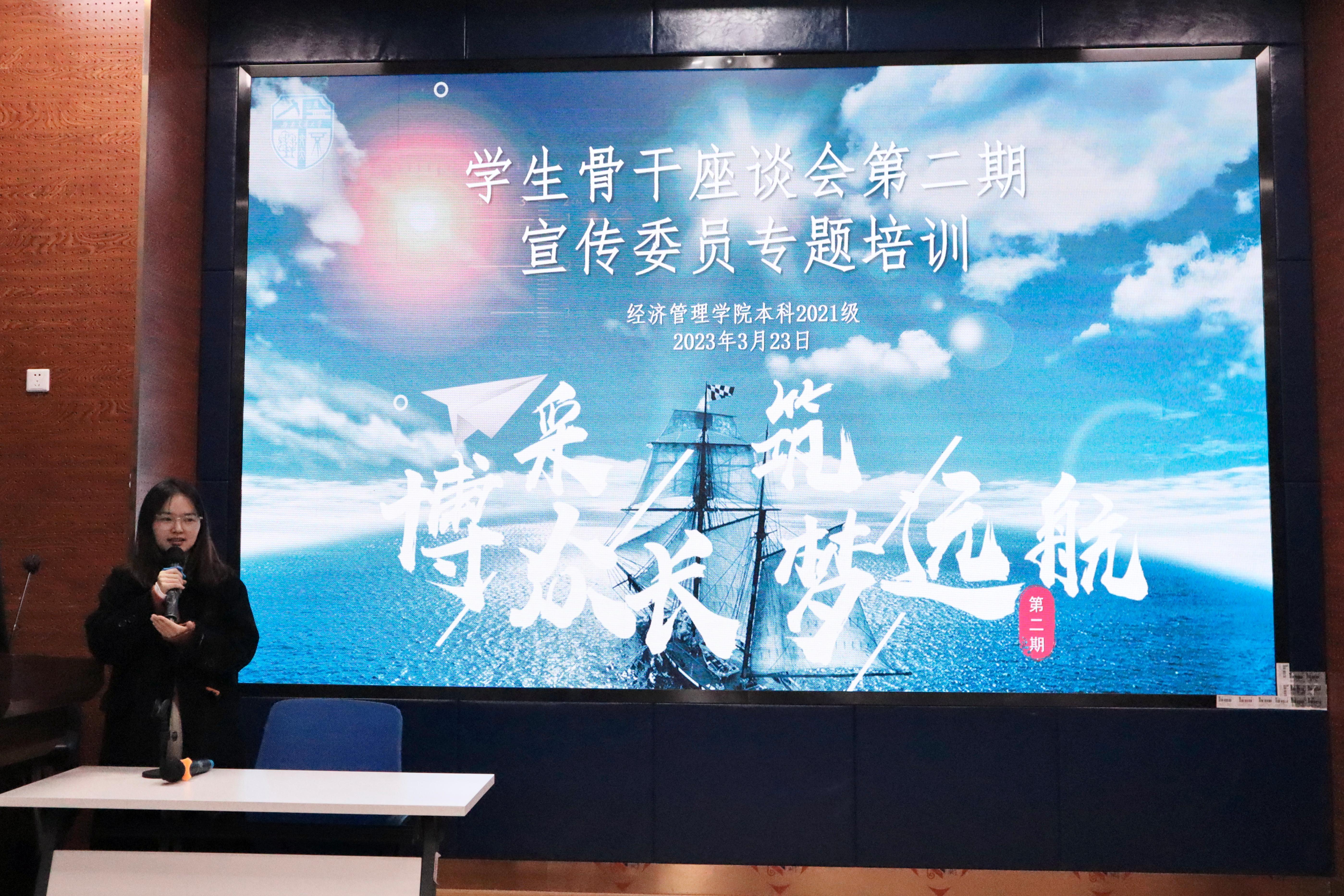 为进一步打造素质高、能力强的宣传队伍,培养学生干部业务能力,2023年3月23日19时30分,冰球突破豪华版官方网站本科2021级于J0218教室开展“博采众长,筑梦远航”第2期学生骨干座谈会。本次座谈会邀请经英传媒中心新闻采编部部长李吴傲、摄影部副部长陈焕主讲,本科2021级辅导员张先凌、莫代玉出席,各班宣传委员及部分其他学生干部参加。