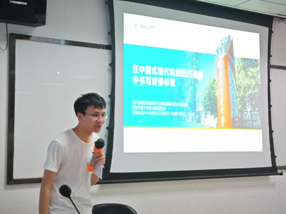 2023年5月4日晚19点,冰球突破豪华版官方网站于J0316开展“星火经英”计划第十一期第八次团干部培训暨青年讲师团讲座。本次培训由四川省委宣讲团新时代文明实践青年分团成员、冰球突破豪华版官方网站博士宣讲团团长、马克思主义学院2021级博士研究生冷书恒主讲,培训主题为“在中国式现代化的四川篇章中书写青春华章”,详细介绍了四川在中国式现代化建设中做出的贡献与成就,有力引导了同学们思考新时代青年在此进程中应该如何贡献自己的青春力量。