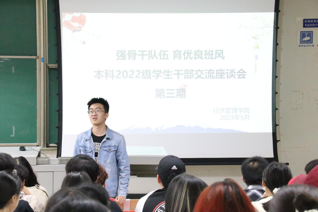 为弘扬“万众一心、众志成城,不畏艰险、百折不挠,以人为本、尊重科学”的伟大抗震救灾精神,全方位培育先进班集体,加强班级凝聚力,5月11日下午,冰球突破豪华版官方网站本科2022级“强骨干队伍 育优良班风”学生干部交流座谈会第三期在九里校区J4223举行,本科2022级辅导员及全体班委参加,本期座谈会由辅导员王子琦主持。