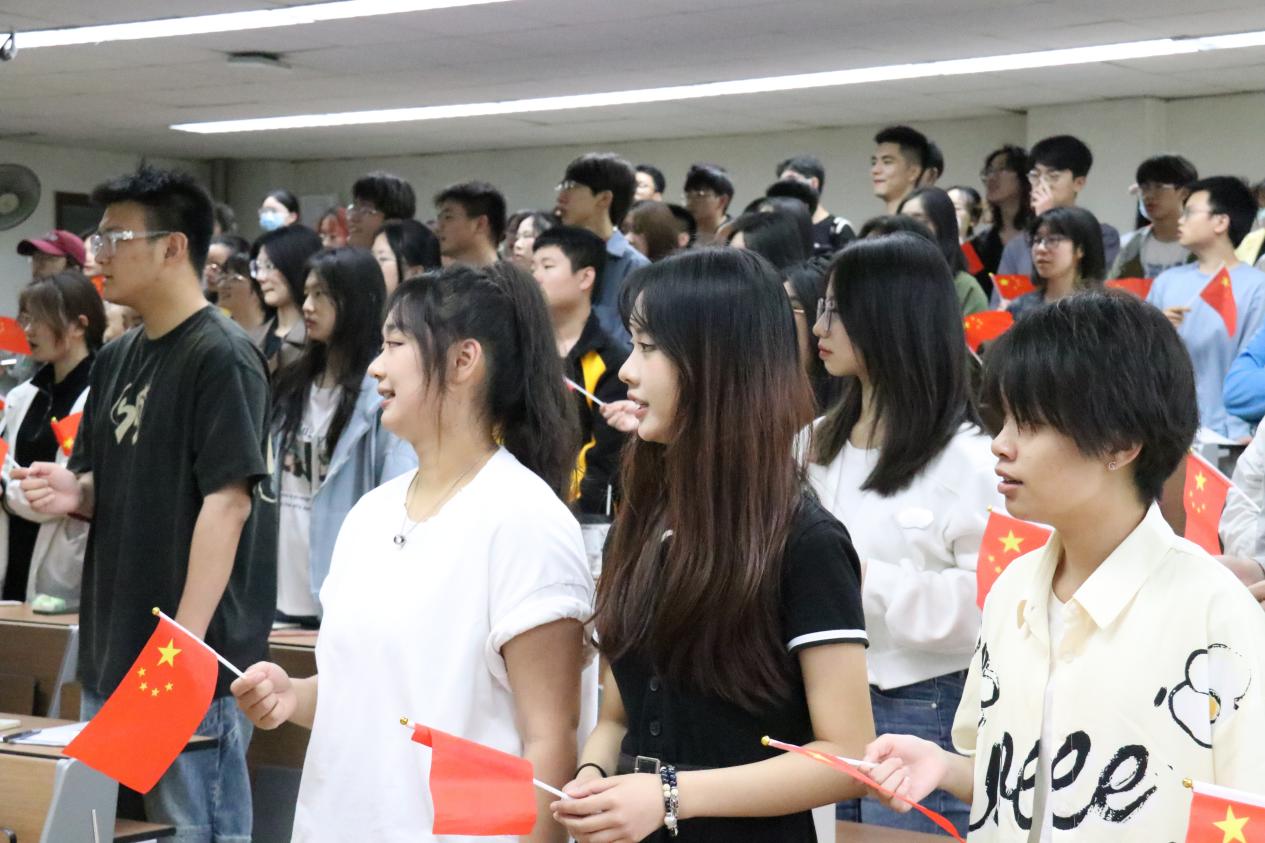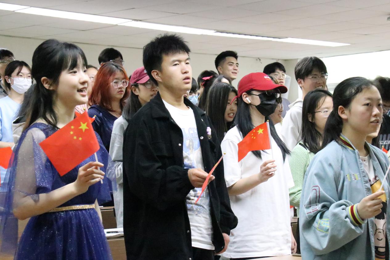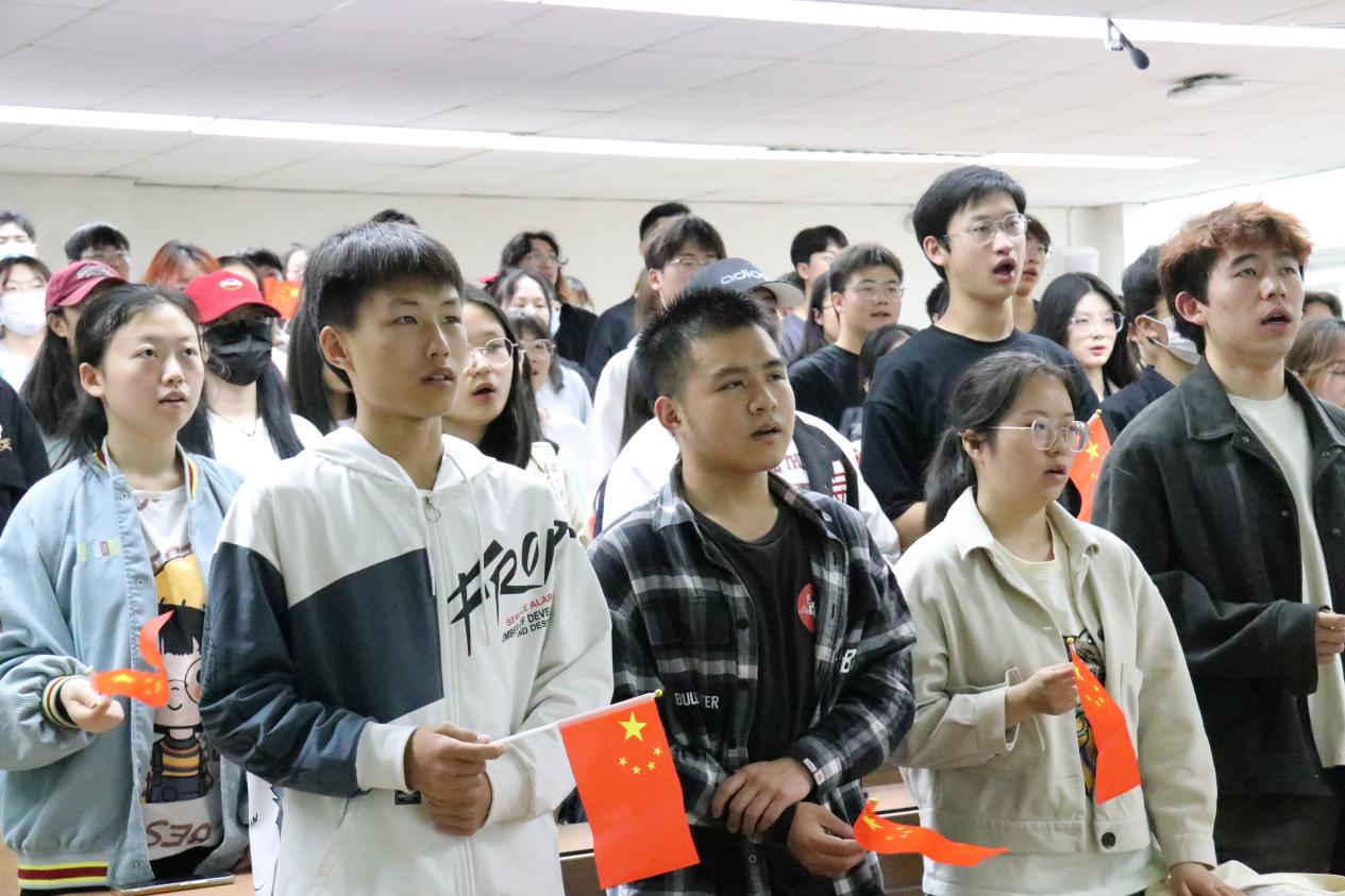 本期座谈会邀请到“音乐里的故事”《为了谁》讲演团。讲演团以生动感人的语言阐述了在2008年汶川特大地震时无数志愿者、医疗人员、救援队员、普通民众挺身而出,在最短的时间内,在废墟下抢救出一个又一个生命的故事。同时,讲演团结合图片和视频展现了在波澜壮阔的抗震救灾斗争中广大党员干部和人民军队战胜一切艰难险阻的大无畏精神以及临危不惧、舍生忘死的英雄气概。一个个紧急救援的真实故事,一幕幕令人动容的画面使得在场同学们无不动容,共同举起手中的小红旗合唱歌曲。