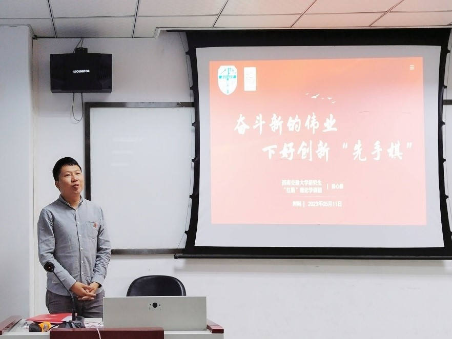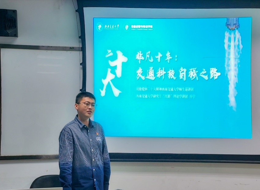 2023年5月11日晚7点,“星火经英”计划第十一期第九次团干部培训暨青年讲师团讲座于J0316顺利开展。本次团干部培训由两个部分组成,第一部分由学习宣传党的二十大精神冰球突破豪华版官方网站师生巡讲团、研究生“红路”理论学讲团成员童心豪主讲,主题为“奋斗新的伟业下好‘创新’先手棋”。第二部分由学习宣传党的二十大精神冰球突破豪华版官方网站师生巡讲团成员、研究生“红路”理论学讲团副团长乔宇主讲,主题为“非凡十年,交通科技自强之路”。本次培训旨在帮助同学们立足新时代,了解当代“交通人”的使命担当,发扬创新精神。