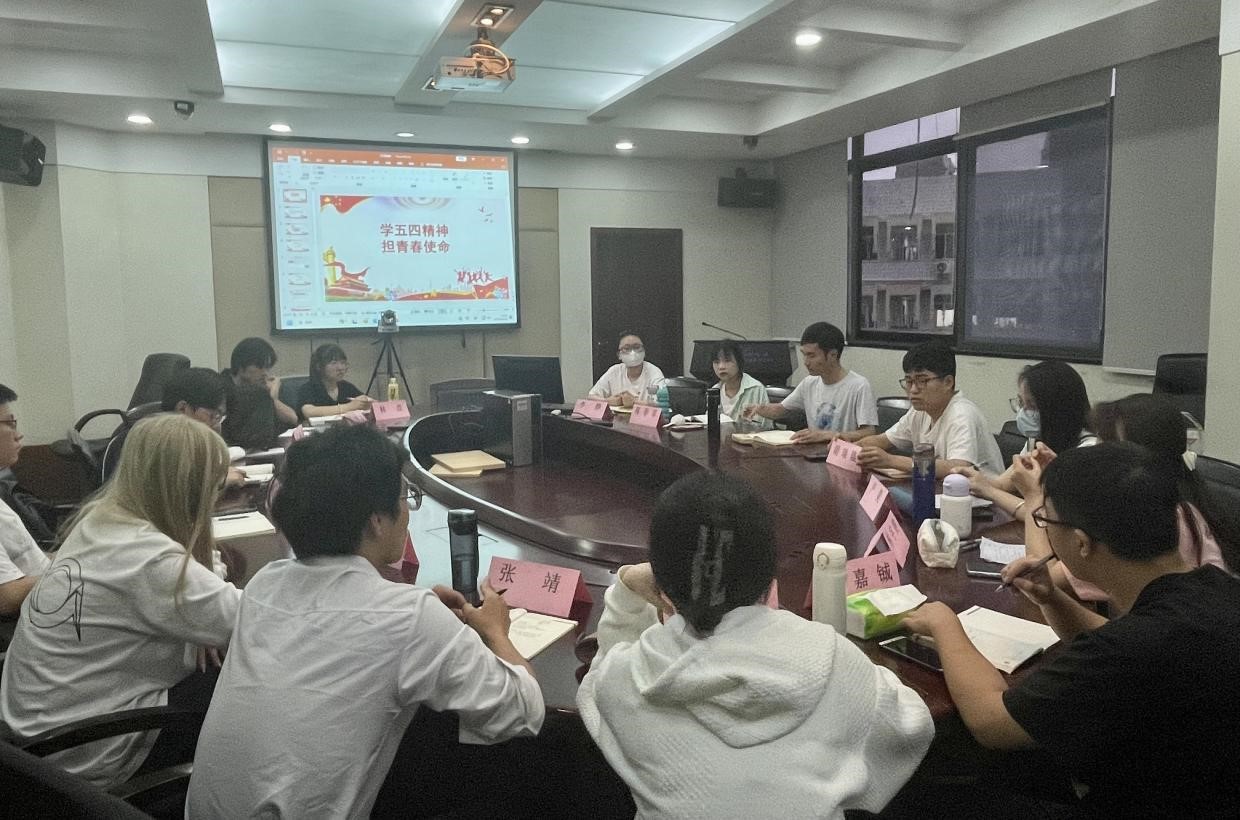本次会议围绕“学生会政治学习和工作安排”,由主席团成员蒋菲菲主持开展。会议伊始,卢奕同学带领学生会工作人员开展以“学习五四精神,担青春使命”为主题的政治学习,共同学习了五四精神及其内涵,鼓励发扬和践行五四精神,坚定理想信念,勇担青年责任。随后,各部门工作人员逐一发言,对五月举办的文艺晚会和微电影大赛进行总结和反思,主席团成员进一步指出工作不足,归纳总结工作经验。最后,苏扬老师和主席团成员带领工作人员明晰六月工作安排,讨论和确定工作细节。