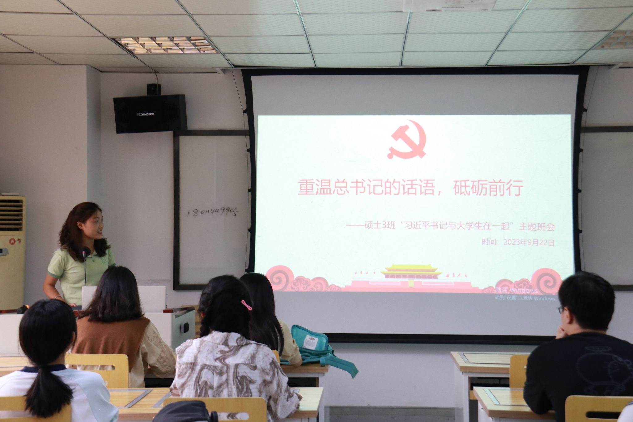 为进一步深入学习习近平总书记在中共中央政治局第五次集体学习时的重要讲话精神,响应教育强国建设的号召,冰球突破豪华版官方网站于2023年9月22日-9月26日组织研究生新生各班班级开展了“习近平总书记与大学生在一起”主题班会。