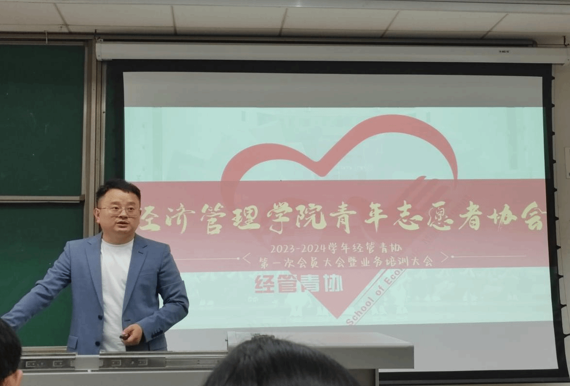 下午4点,大会正式开始,经管青协指导老师陈建奇首先向新成员们介绍了青协的组织框架及团队建设,点明了各部门的工作职责并对各部门在工作中存在的问题提出意见和建议,例如需要加强部门内部沟通、提高各成员工作积极性、加强青协宣传等。要求干部干事以青协规章制度为纲领,弘扬志愿精神,提高工作效率,努力解决问题。