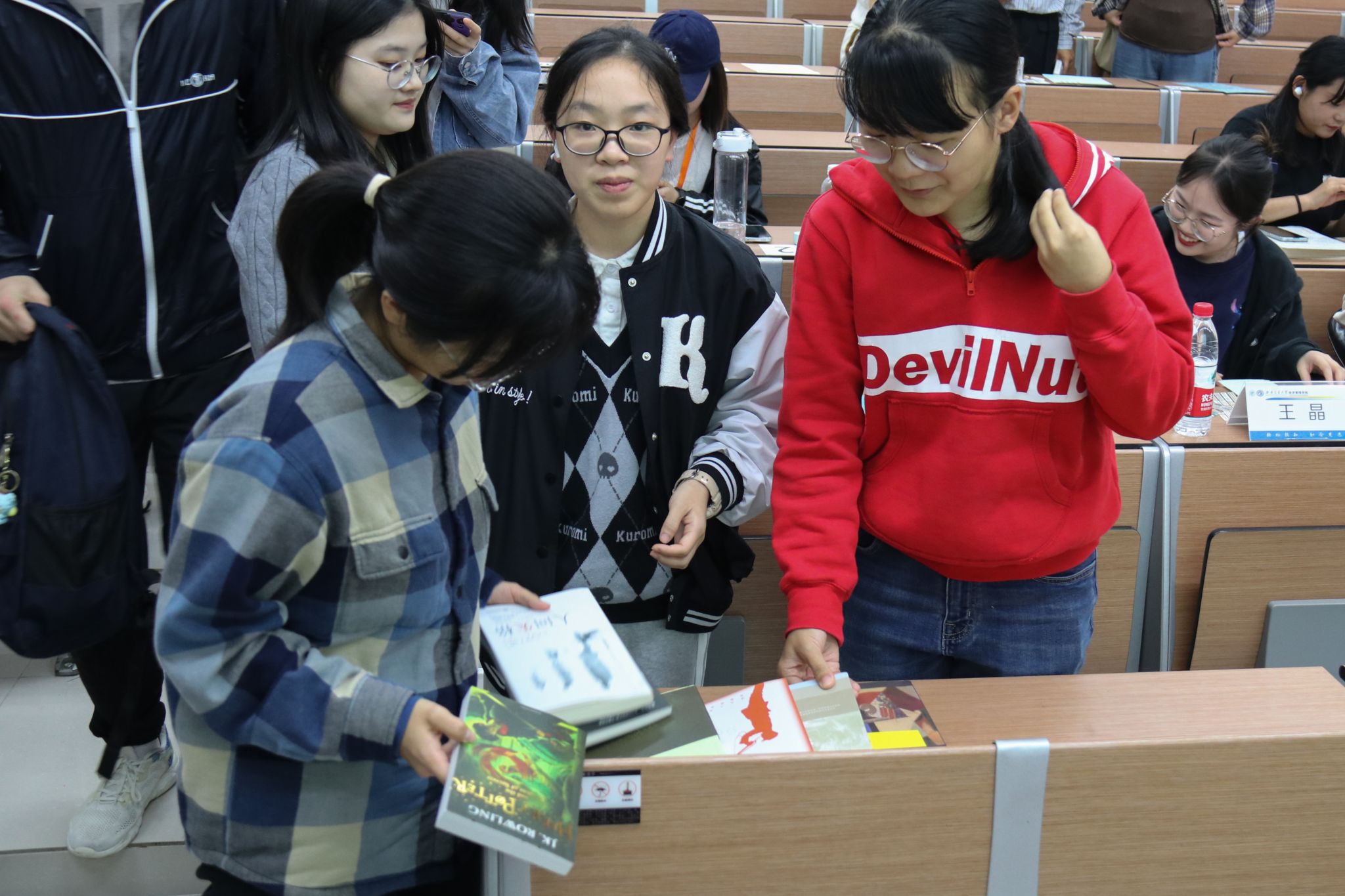 在图书漂流环节,同学们带来了自己的闲置好书,交换书籍。同学们在自己的书中留下写着时光寄语的明信片,将自己想对图书新主人说的话留在明信片上,以一书换一书、以旧书换新友,把阅读的美好体验分享给其他同学,共享书香之美、感悟书籍之妙、开拓阅读视野。