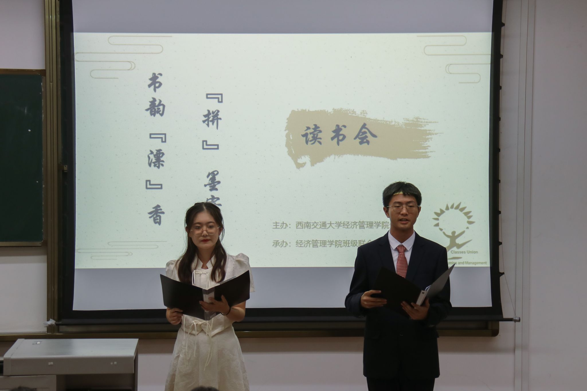 冰球突破豪华版官方网站“拼”墨寄情,书韵“漂”香读书会于2023年10月19日19:30在九里校区J4107举行,学院分团委书记贾佳、班级联合会指导老师张先凌、研究生辅导员贺小轩、李勇参加活动。