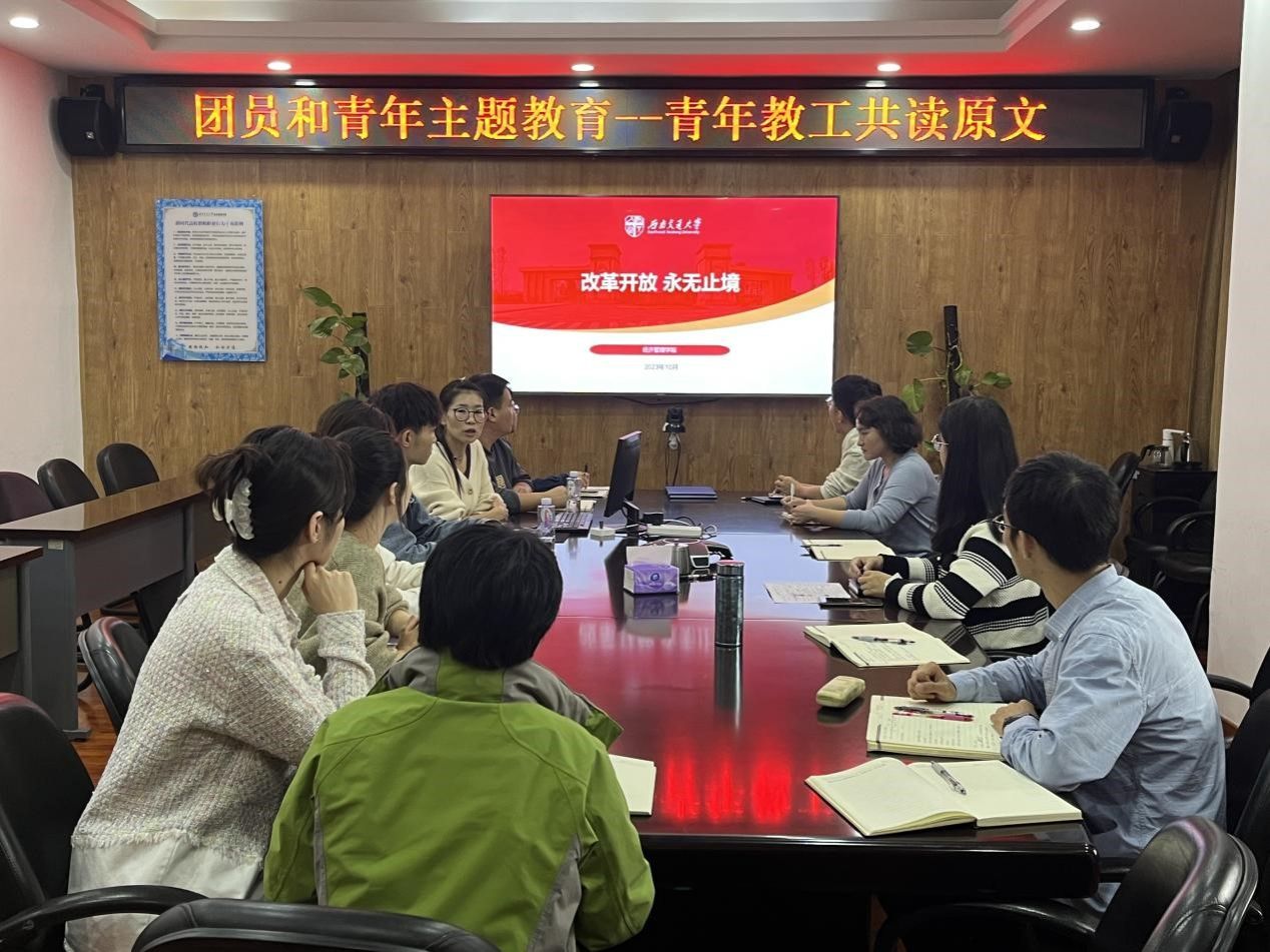 聚焦团员和青年主题教育,扎实做好学院的青年学生工作,2023年10月31日下午3点,冰球突破豪华版官方网站团委组织学院学工组青年教师,在九里校区零号楼0607会议室开展了读原著、学原文、悟原理青年教师共读原文活动。