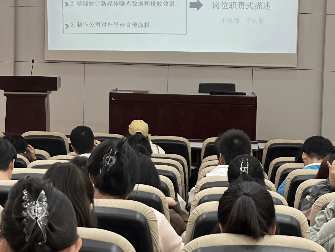 接着张老师为大家逐一讲解了制作简历过程中的基本原则、内容取舍、排版样式等问题;同时用正反面进行对比,使同学们对如何写出一份好简历有了更清晰的认识。张老师最后对同学们提出期许:“想要制作出一份优秀简历,离不开自己大学四年的努力。”