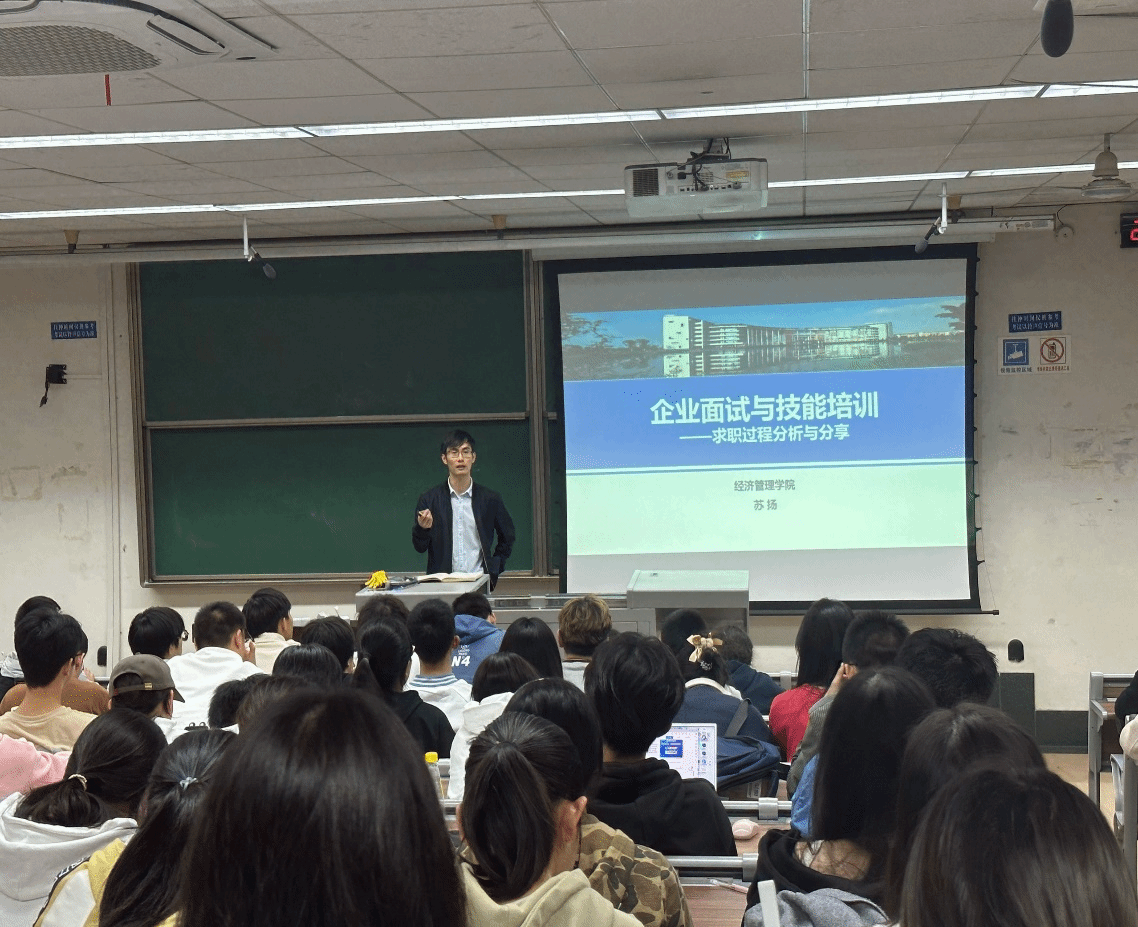 接下来,辅导员苏扬老师也为简历制作做了进一步的补充,并趁热打铁为同学们讲解了有关面试的内容,不仅将投递公司与面试情况的时间线以表格的形式列出,而且也将对求职过程的分析以数据的形式展现出来,使同学们更深一步地了解面试求职的过程。最后,苏老师通过讲述求职经验与求职心得,将求职时需要考虑的因素和维度逐一展列,帮助同学们明晰内心的选择。