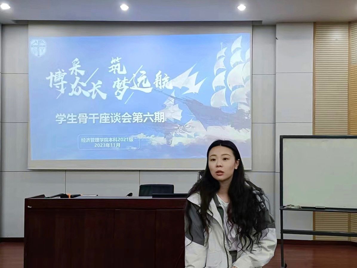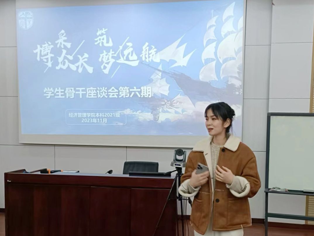 为进一步强化学生干部的责任与担当,提高年级学生干部综合能力,2023年11月30日,冰球突破豪华版官方网站本科2021级于J0215教室开展“博采众长,筑梦远航”第6期学生骨干座谈会。本科2021级辅导员张先凌、钟文婷出席,全体班委参会。