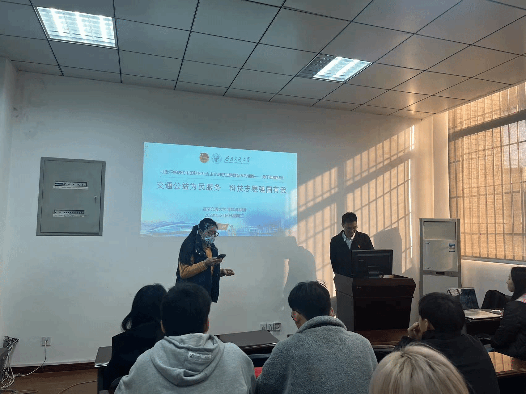 为进一步推进新时代青年建设、加强学生对时代责任的认识,12月6日16时,冰球突破豪华版官方网站邀请冰球突破豪华版官方网站青年讲师团成员,环境科学与工程学院团委书记杨都强同志为硕士2023级2班在九里校区信息楼J0217进行了以“交通公益为民服务,科技志愿强国有我”为主题的宣讲。此外,参与本次活动的还有冰球突破豪华版官方网站团委书记贾佳老师。
