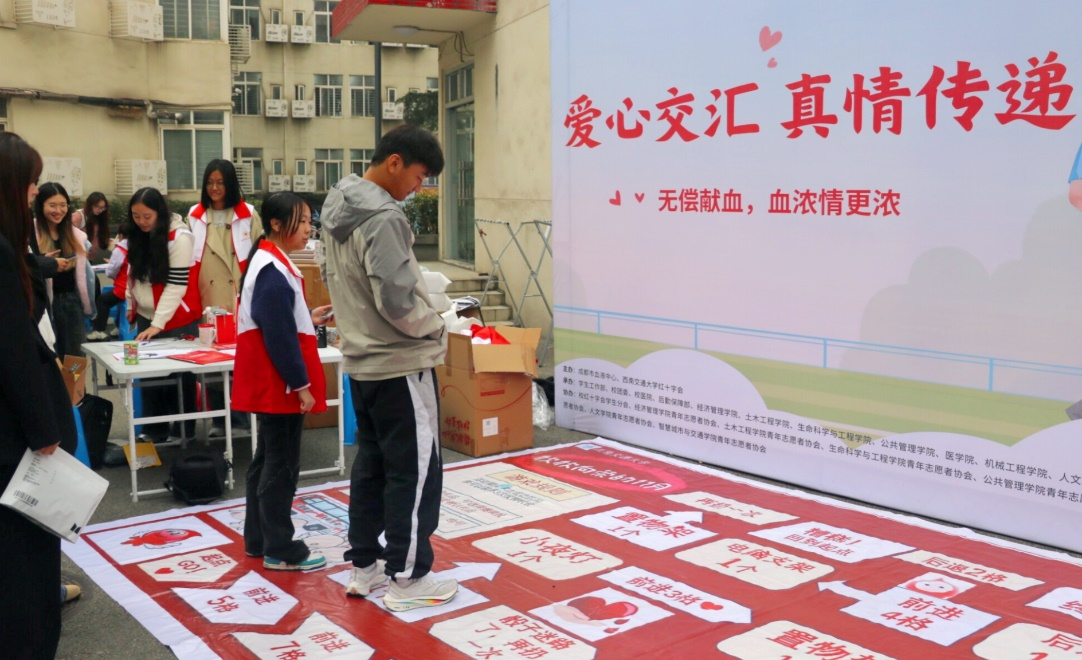 为了传播爱心与希望,弘扬社会正能量,由成都市血液中心和冰球突破豪华版官方网站红十字会共同主办,学生工作部、校团委、校医院、后勤保障部以及冰球突破豪华版官方网站青年志愿者协会等共同承办的“爱心交汇,真情传递”无偿献血进校园活动于11月22日在冰球突破豪华版官方网站九里校区成功举行。