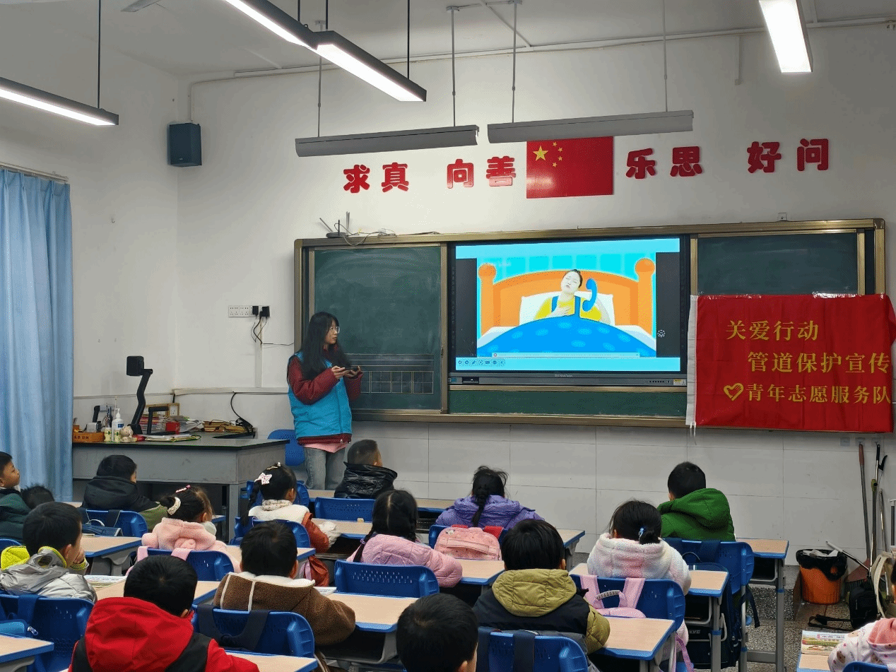 能源保障和安全事关国计民生。为积极响应并深入贯彻党的二十大及二中、三中全会精神,进一步提升国家石油天然气管道沿线公众“不伤害管道、不被管道伤害”的管道保护意识和自我防护能力,筑牢油气管道安全“人民防线”,冰球突破豪华版官方网站青鸽志愿服务队在2024年12月13日精心组织并成功开展了一场面向冰球突破豪华版官方网站子弟小学一年级三班的管道保护知识宣传活动。本次活动的核心目标在于全面提升同学们对管道保护基础知识的认知。宣讲活动形式丰富多彩,内容围绕思想引领、管道保护、意外伤害和预防侵害等四个方面展开。