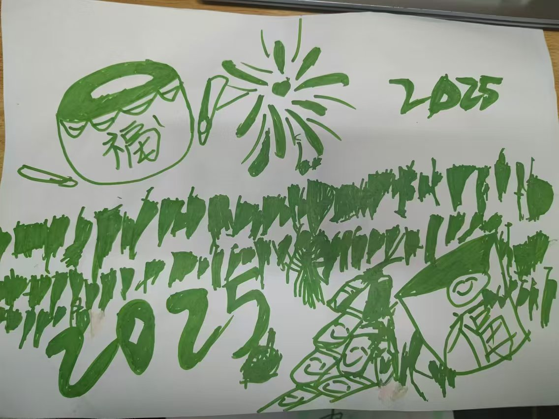 在星光班,三位志愿者精心准备了彩笔和彩纸,以新年为主题,引导“大朋友们”进行绘画创作。志愿者们在黑板上绘出红灯笼、福袋等充满节日氛围的简笔画,鼓励大家发挥想象力,大胆创作。在志愿者耐心指导下,大朋友们用手中画笔,勾勒出充满童趣与活力的作品。每一幅画作都饱含着他们对生活的热爱,闪耀着独特的想象力与纯真情感。这些作品不仅是艺术创作,更是他们内心世界的美好展现。