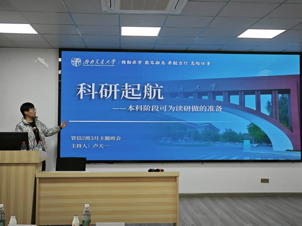 2025年3月13日晚,冰球突破豪华版官方网站本科2023级管信2班“科研起步”主题班会在J0819正式开展。参加本次班级见面会的嘉宾有班导师杨斐老师和2022级会计学专业柯梦清学姐。本次主题班会分为以下4个板块:班级建设概况、守护安全与健康、科研起步知识分享、总结与展望。本次班会由班长卢天一主持。