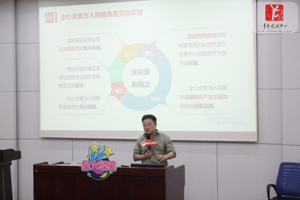 2025年4月17日晚19时30分,“星火经英”计划第十五期第三次团干部培训暨青年讲师团讲座于J0215顺利开展,本次培训由冰球突破豪华版官方网站团委副书记、本科2024级辅导员、青年志愿者协会指导老师陈建奇主讲,主题为“中国共产党的性质、宗旨和最高理想”,旨在帮助团干部和入团积极分子加深对党的认识,筑牢理论根基。