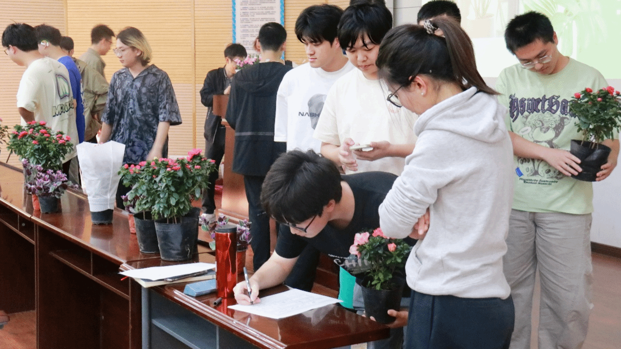 活动结束后,在贾佳老师和苏扬老师的组织下,各寝室代表有序地领取了花卉绿植。在花卉发放环节,同学们还积极地向欧阳黎君老师请教养护知识,交流学习心得。