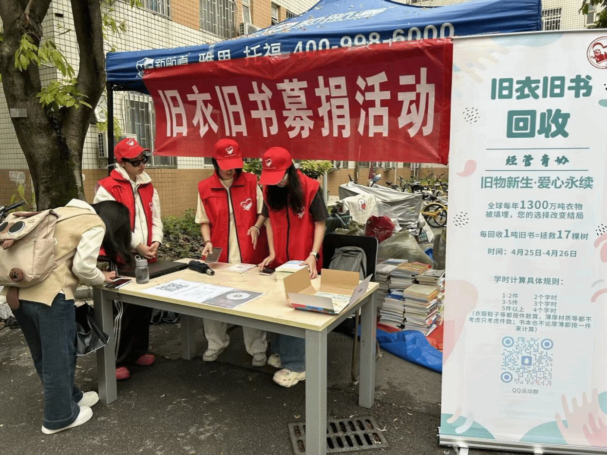 四月的冰球突破豪华版官方网站九里校区内暖阳高照,处处生机勃勃。在这宜人的季节里,一项汇聚爱心与温暖的活动——“旧物新生·爱心永续”旧衣旧书回收活动于4月25日至26日在这里成功举办,为校园增添了一抹温馨的色彩。活动以“衣旧情深传暖意,书香流转续华章”为主题,不仅吸引了全校师生的高度关注,也激发了他们的参与热情