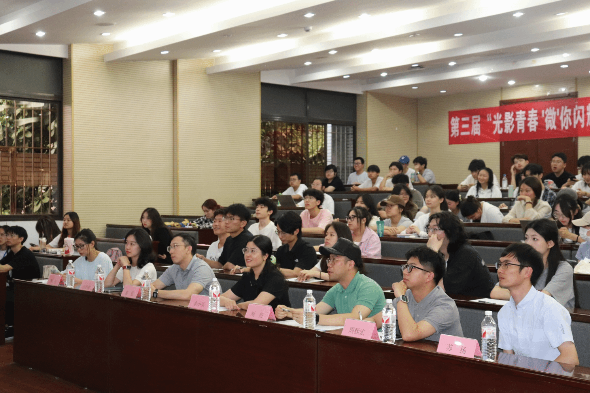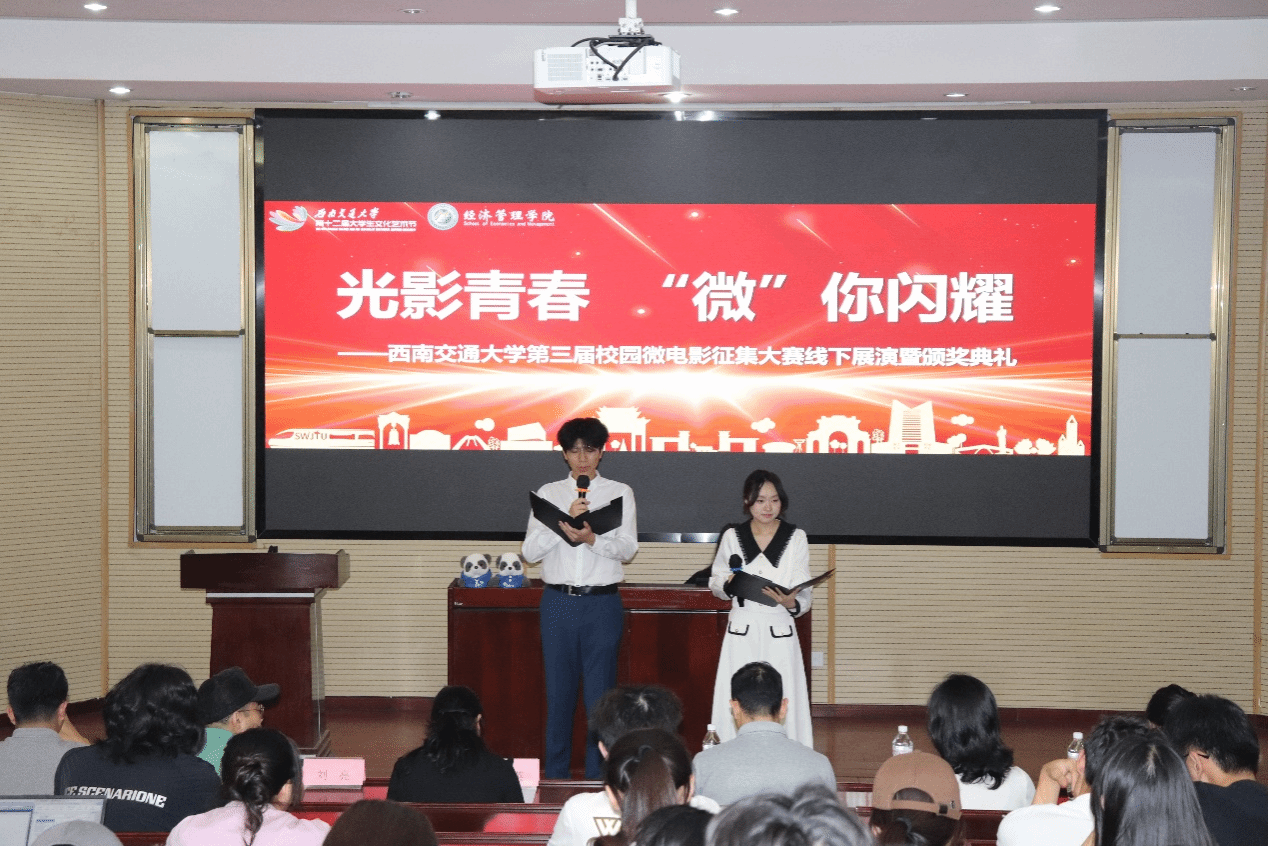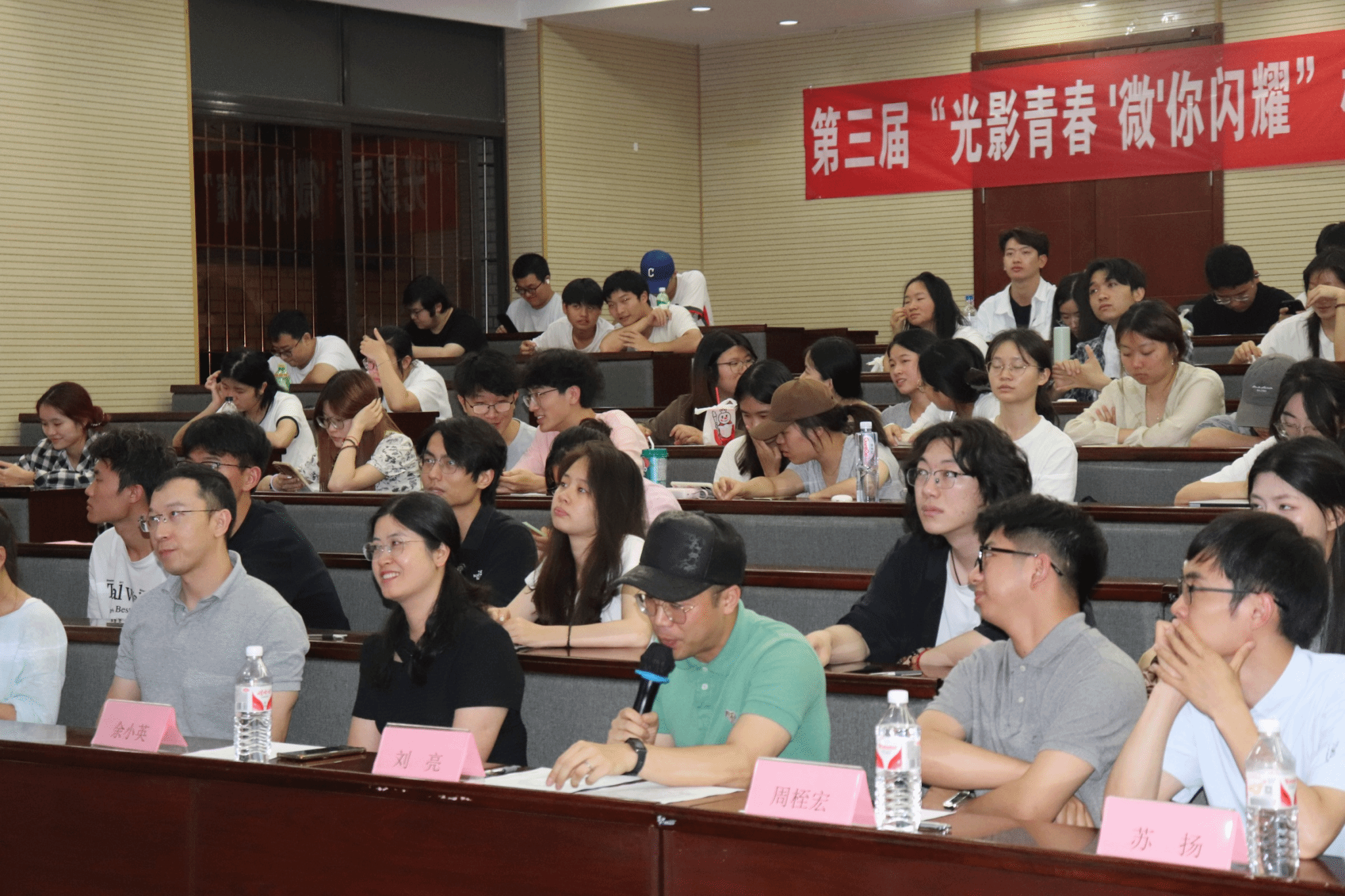 2025年5月29日晚,由党委学生工作部主办、冰球突破豪华版官方网站承办的第三届“光影青春 微你闪耀”校园微电影征集大赛线下展演暨颁奖典礼在九里校区J0202教室举行。党委学生工作部文化素质教育基地办公室主任黄原老师,党委宣传部刘亮老师,党委学生工作部文化素质教育基地办公室沙静馨老师,人文学院本科2021级辅导员、青年志愿者协会指导老师周桎宏老师,冰球突破豪华版官方网站党委副书记余小英老师,冰球突破豪华版官方网站团委书记贾佳老师,冰球突破豪华版官方网站本科2023级辅导员苏扬老师出席活动,共同见证交大学子用镜头讲述的青春故事。
