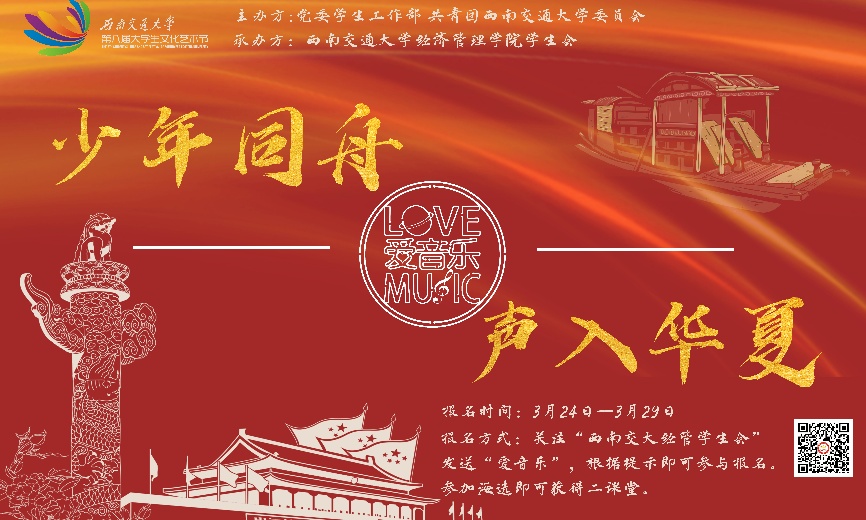 在薄慧的带领下,经管院学生会举办了主题为“少年同舟,声入华夏”的第十六届“爱音乐”校园歌手挑战大赛,通过喜闻乐见的歌曲演奏形式,带动广大师生一起走进百年党史,学四史、悟初心。同学们将自己对党和祖国的热爱,在这个大舞台上通过一首首动人歌曲传递出来。