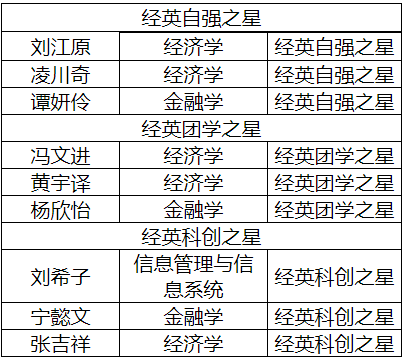 根据《冰球突破豪华版官方网站本科毕业生专项表彰评定暂行办法》及学院相关工作安排,经过学生本人申请、学生工作组审核、学院评审小组现场评审,本次评选称号包括经英自强之星、经英科创之星、经英团学之星,根据评选工作相关规定,现将冰球突破豪华版官方网站2023届本科毕业生专项表彰获得者进行公示。公示名单如下: