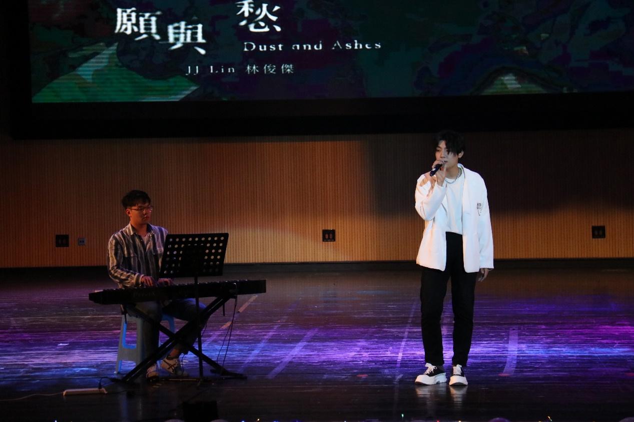 在晚会的第二篇章——向阳而生中,本次晚会的特邀节目嘉宾,我校第十六届爱音乐决赛总冠军闫鸿辰同学为观众带来歌曲《愿与愁》、《孤独娱乐》,歌声缱绻,余音绕梁,博得观众阵阵精彩掌声。