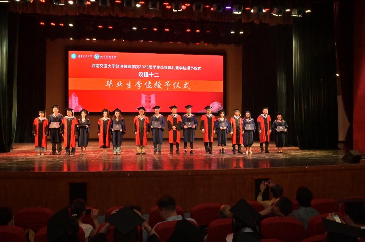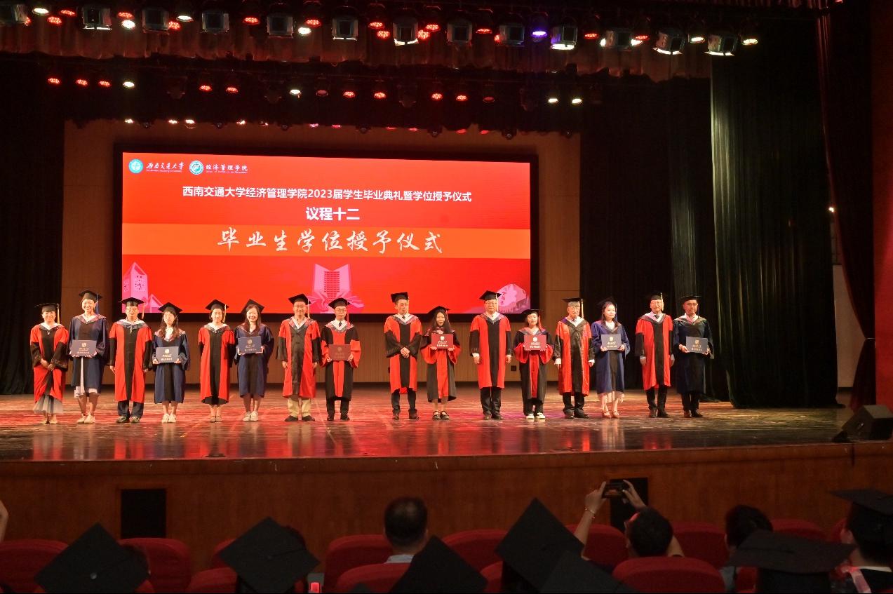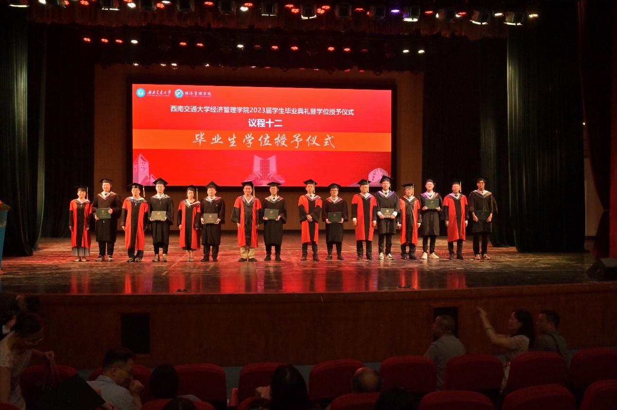 2023年6月17日下午,以“怀经管初心 华交大荣光”为主题的冰球突破豪华版官方网站2023届学生毕业典礼暨学位授予仪式在九里校区大学生会堂隆重举行。学院全体领导班子成员、学院学位评定分委会委员、各系和职能部门负责人、专业负责人、教师代表、毕业生辅导员和班主任,及学院2023届全体毕业生出席本次典礼。本次典礼由学院党委副书记杨宏毅主持。