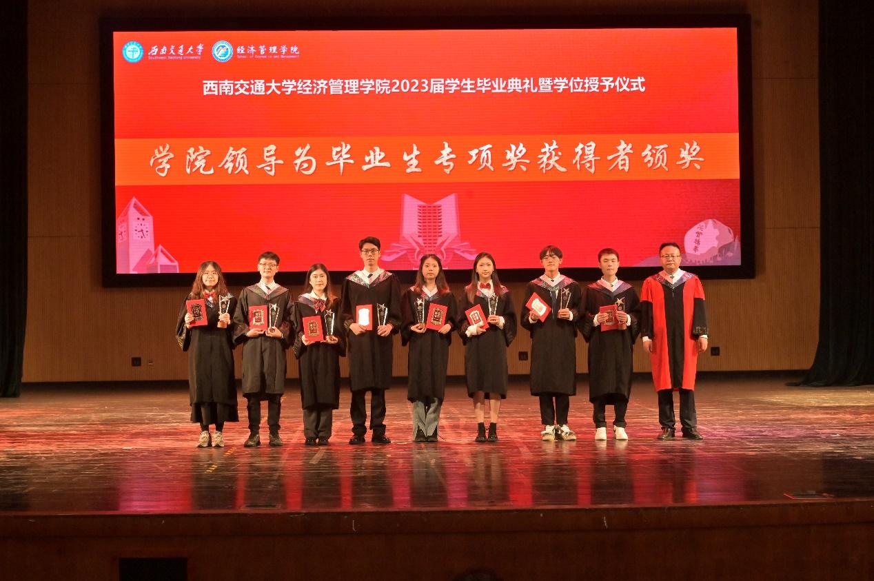 学院党委书记王斌宣读2023届本科生、研究生省级和校级优秀大学毕业生名单,执行院长郭强宣读冰球突破豪华版官方网站2023届本科毕业生专项奖表彰名单和2023年MBA、MEM优秀毕业生名单,并由学院党委书记王斌、院长杨平、执行院长郭强为他们颁发荣誉证书。