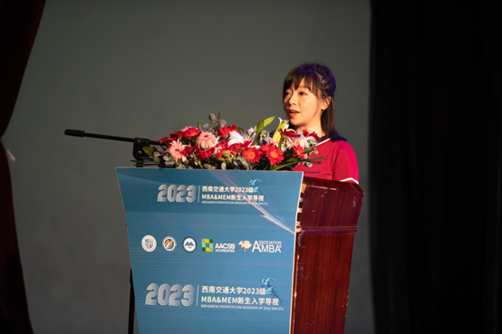 第22届MBA联合会主席范宇宸向新生介绍了学院历年来的公益活动:精准扶贫、教育资助、生态保护、环保卫士,并呼吁同学们躬身入局,践行“格物致知,和合共进”之院训,为创造更美好的社会贡献自己的力量。