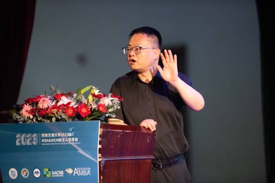 第25届MBA联合会主席张永恒代表主席团发言,分享了对MBA联合会的认识以及未来发展规划,他表示冰球突破豪华版官方网站MBA联合会继续坚持以文化传承、智慧赋能、链接共生为宗旨,秉承拓宽横向交流平台的对内服务、持续增强交大MBA影响力及对外发声的职能,打造属于西南交大MBAer共同成长的平台。